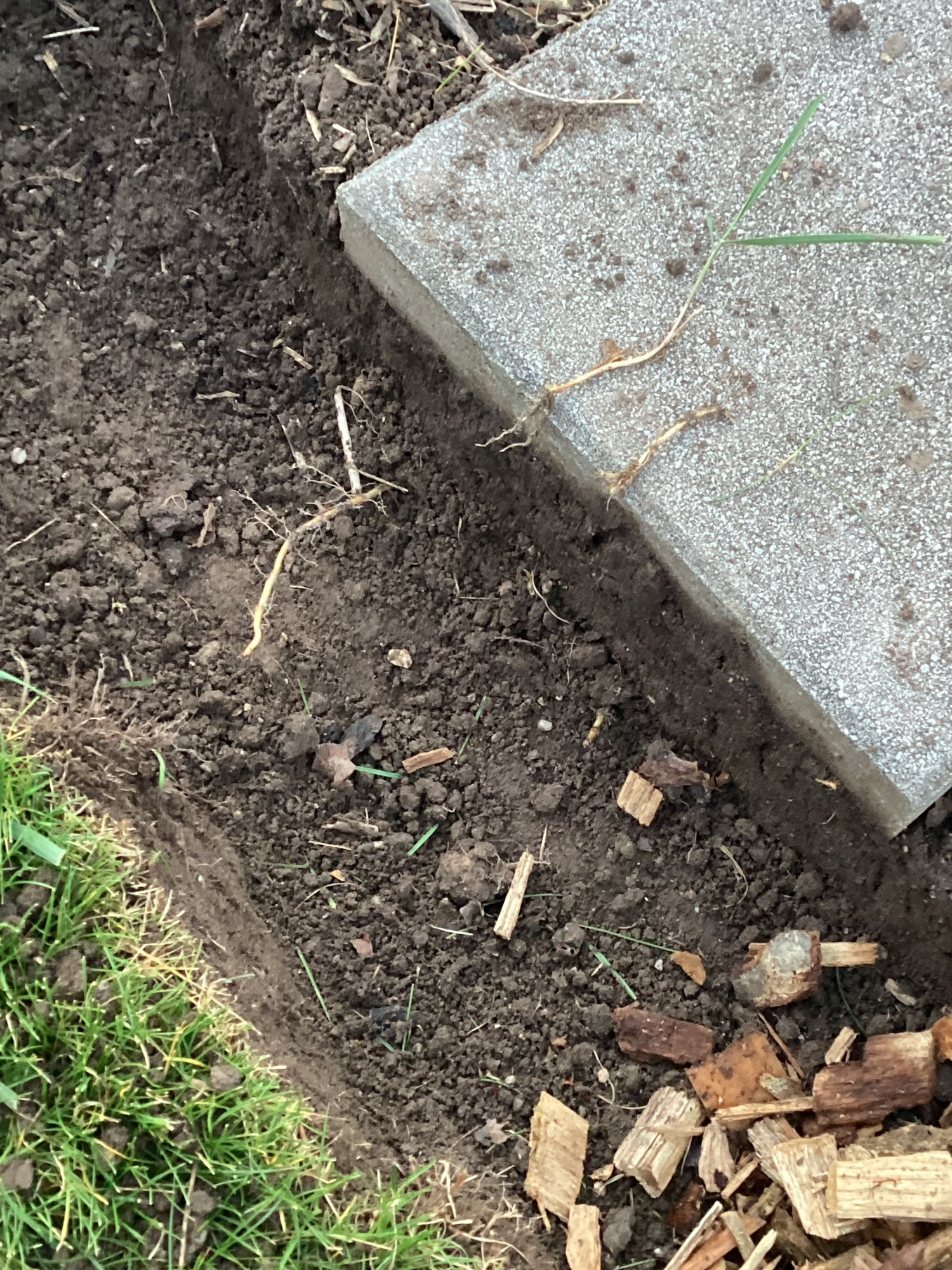 Graben mit Holzschnitzel aufgefüllt.