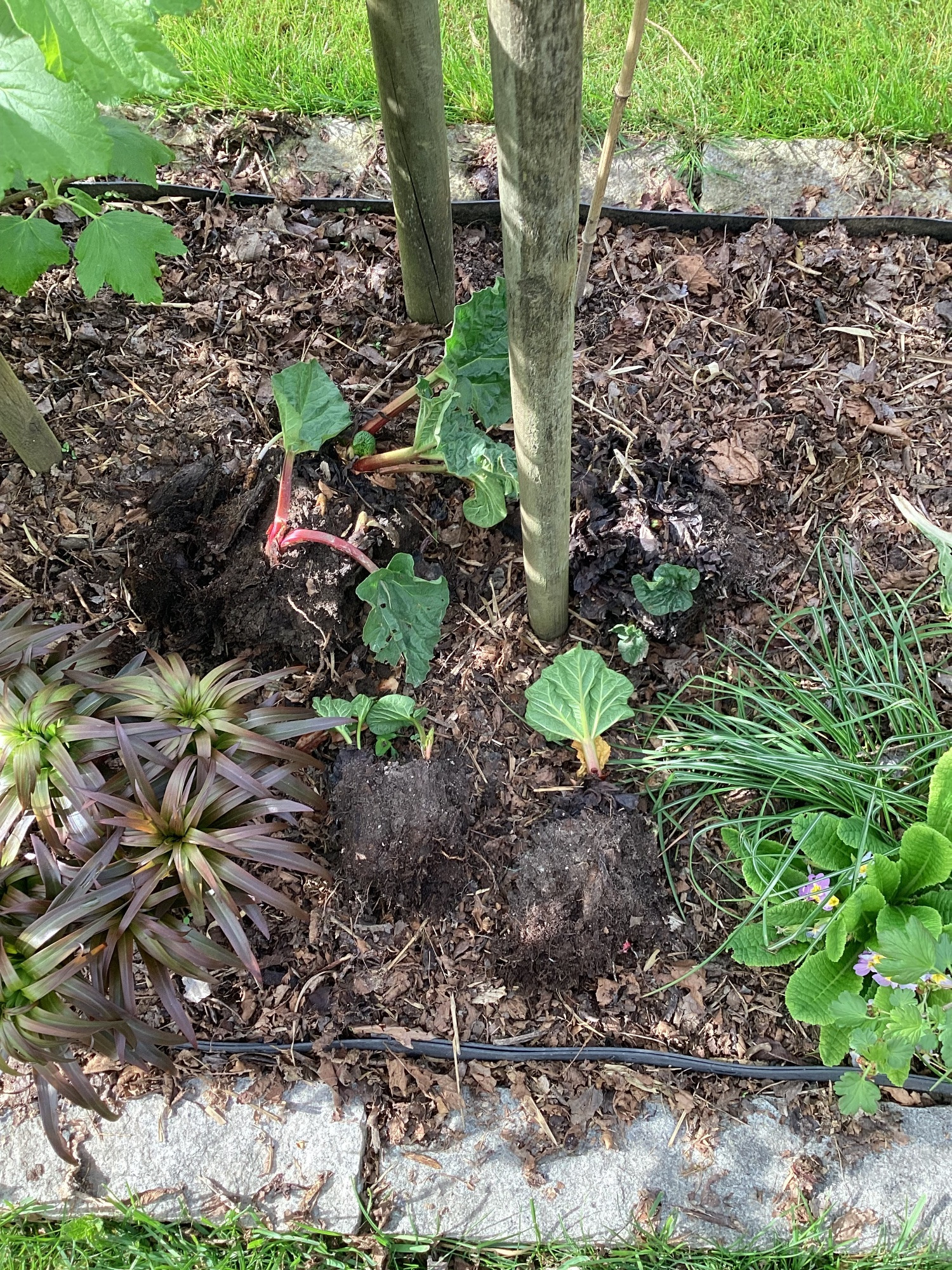 Bei der Rhabarber gab es aussen rum wie Ableger oder wie das genannt wird.
