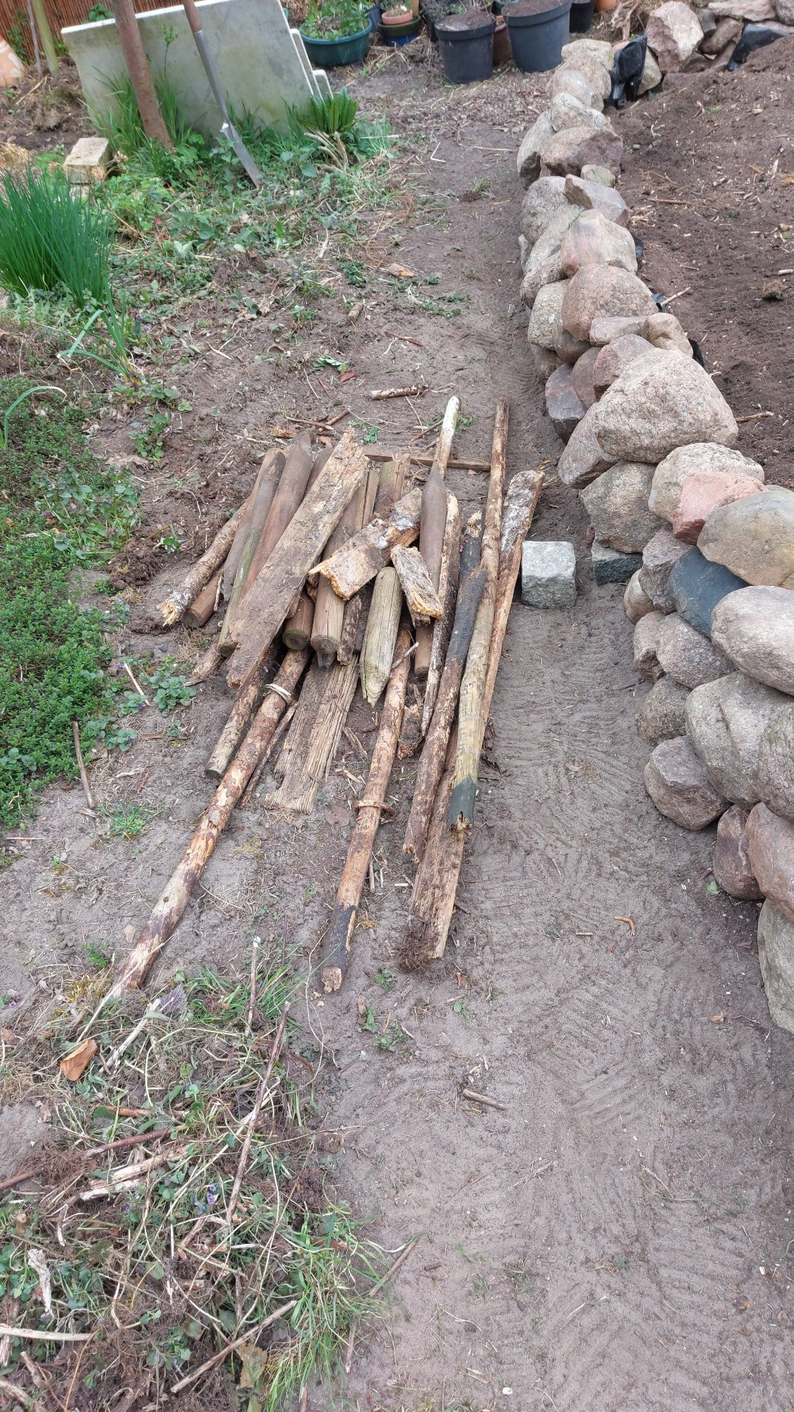 Nun war wieder alles durchgegammelt und die Feldsteine lagen noch hier rum... waren ursprünglich für eine andere Verwendung gedacht, die dann nicht stattfand....