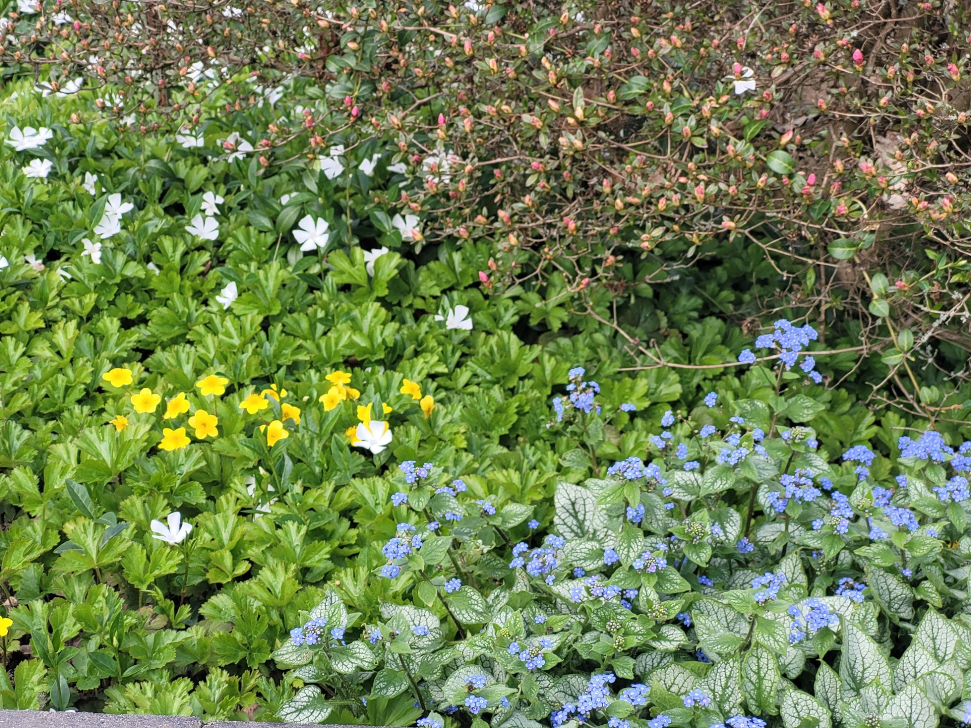 Vinca Minor, Waldsteinia und Brunnera 'Jack Frost' . .