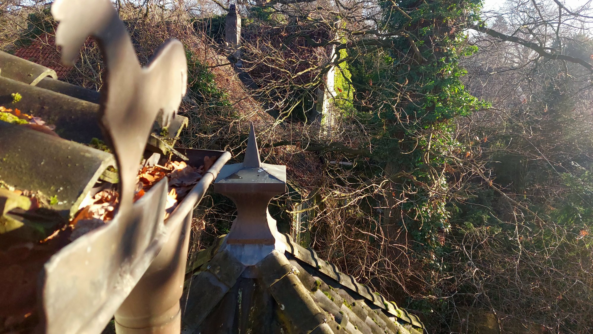 Das Reinigen der Dachrinnen ist eine wunderbare Tätigkeit, da man Ein- und Ausblicke aus der quasi Vogelperspektive hat, die man sonst das ganze Jahr nicht hat,