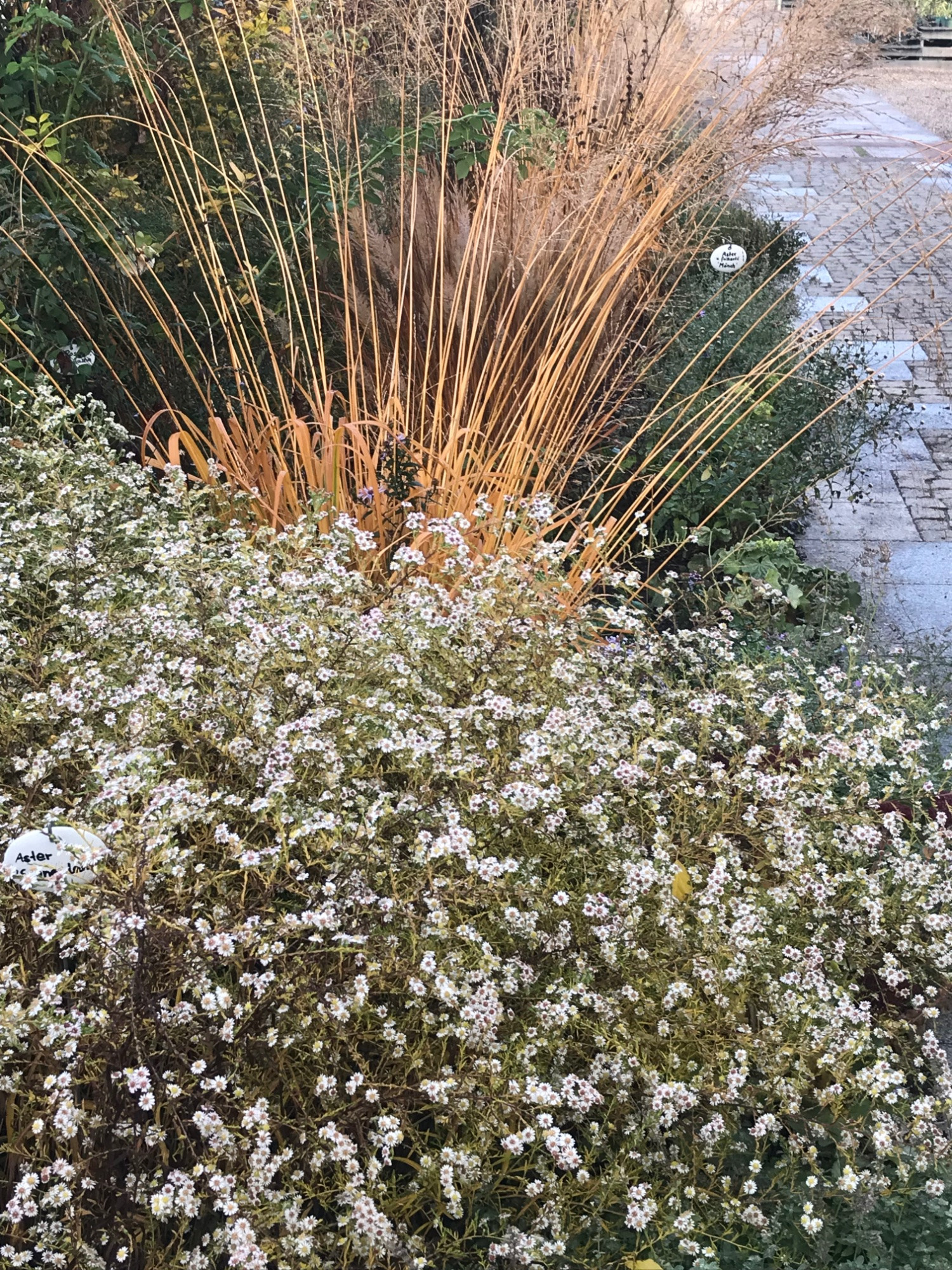 Hier also Amistad im Spätherbst mit Duftnessel, Chrysanthemum und Miscanthus: