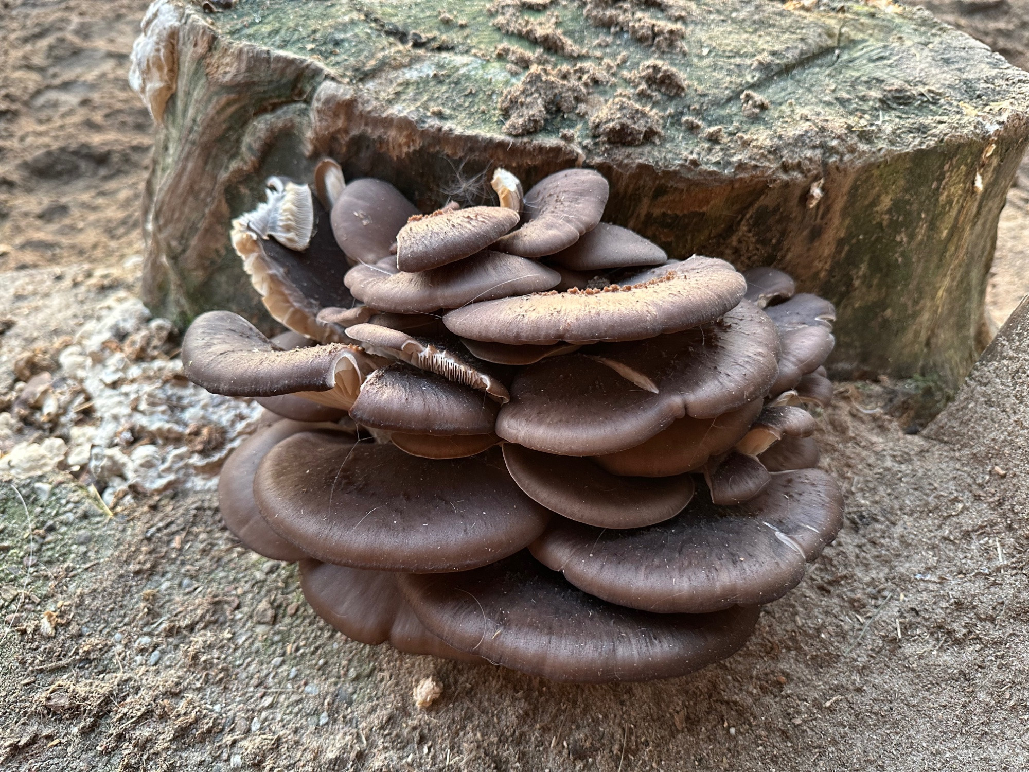 Für mich Austernseitling. Der Pilz wuchs bei meiner Gartennachbarin am abgestorbenen Ahorn. Ich war so mutig ihn zu essen, wie man sieht ich habe es überlebt. Und lecker war er auch noch.