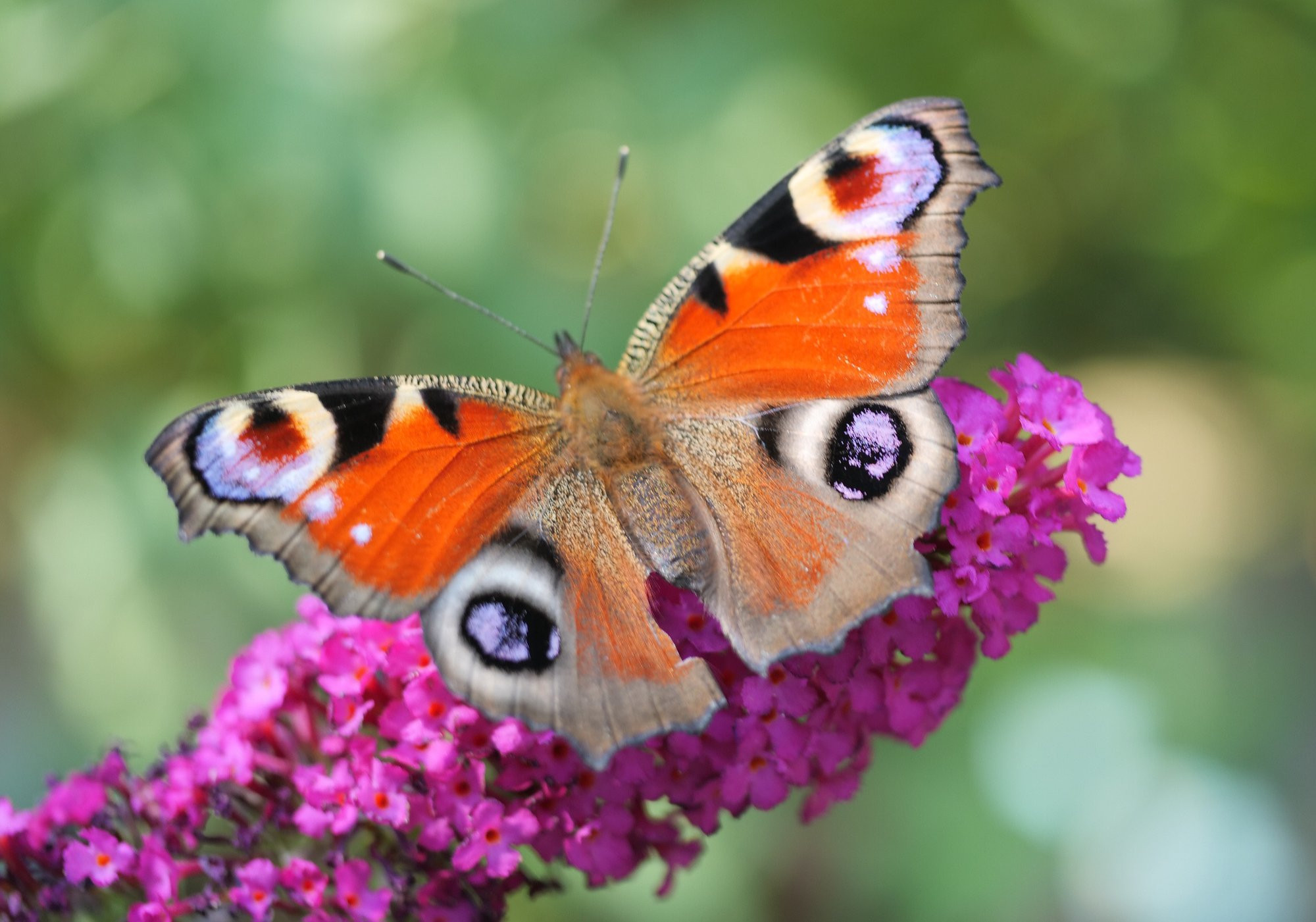 Tagpfauenauge an Buddleja.