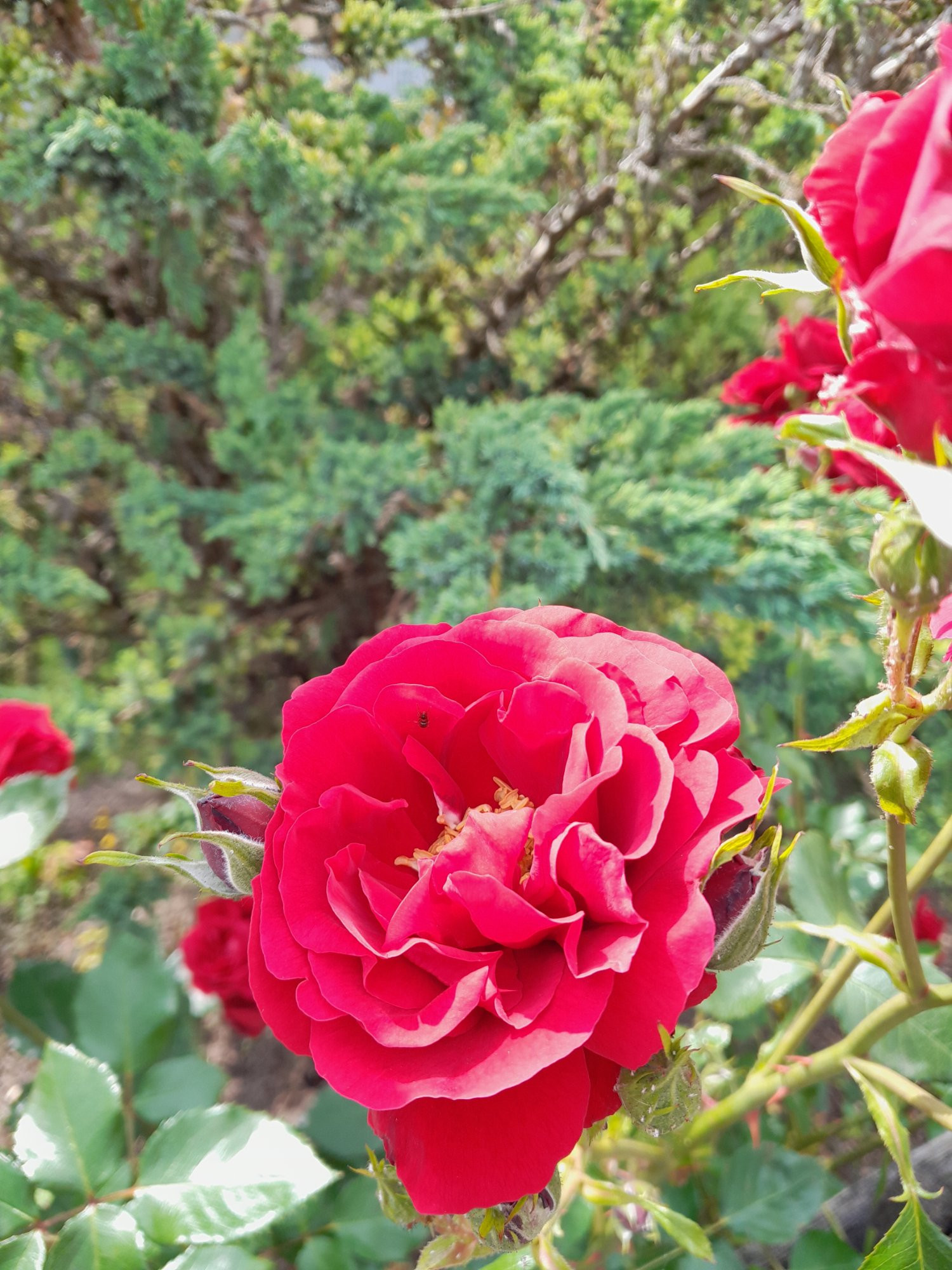 Und Rokko war schneller, also unbekannte Rose mit Wacholder.