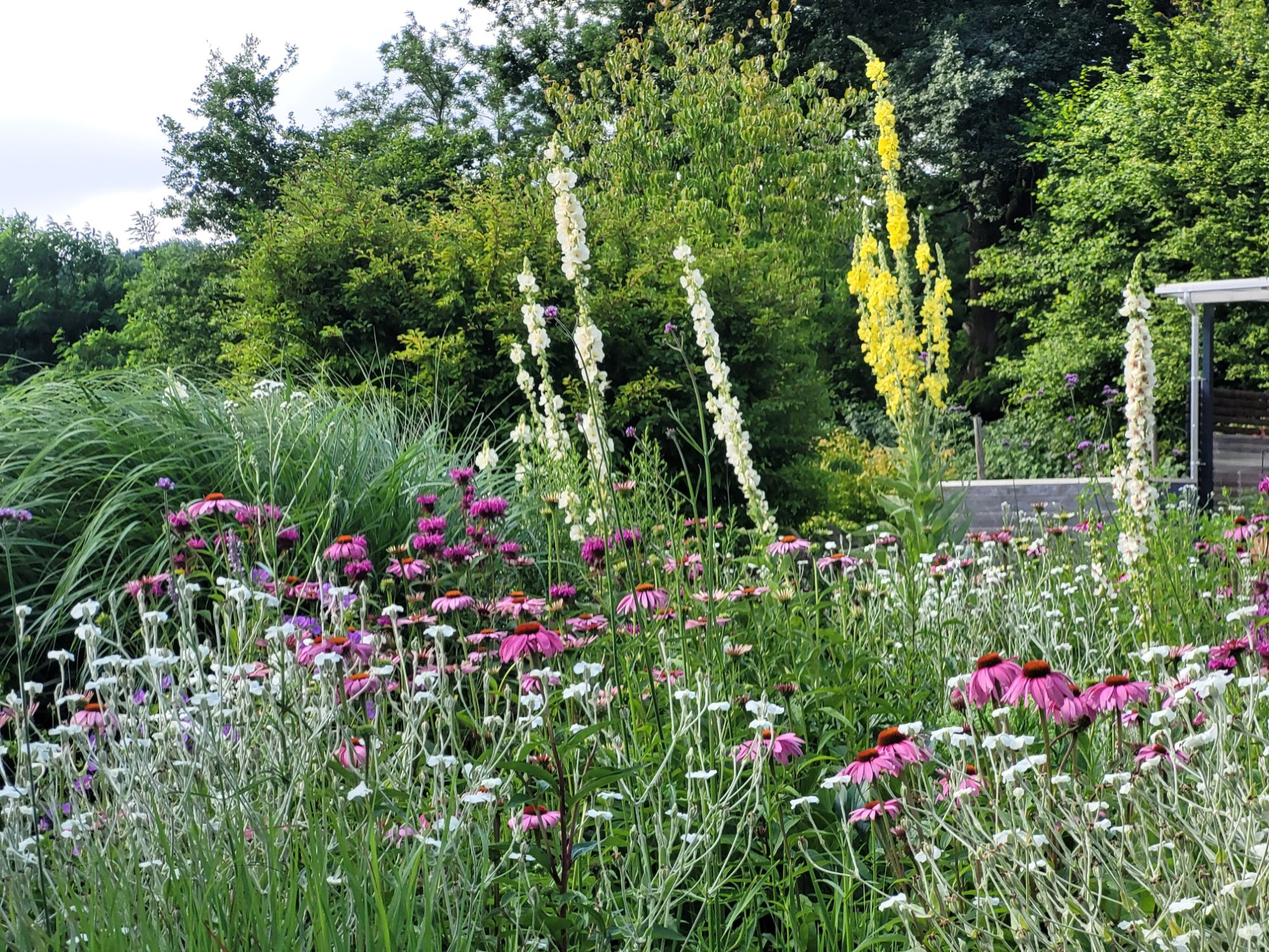 Buddelkönigin, wie heißen denn die weißen Kerzen links von den gelben? Rechts ist Verbascum chaixii 'Wedding Candles' oder Verbascum nigrum 'album', richtig?