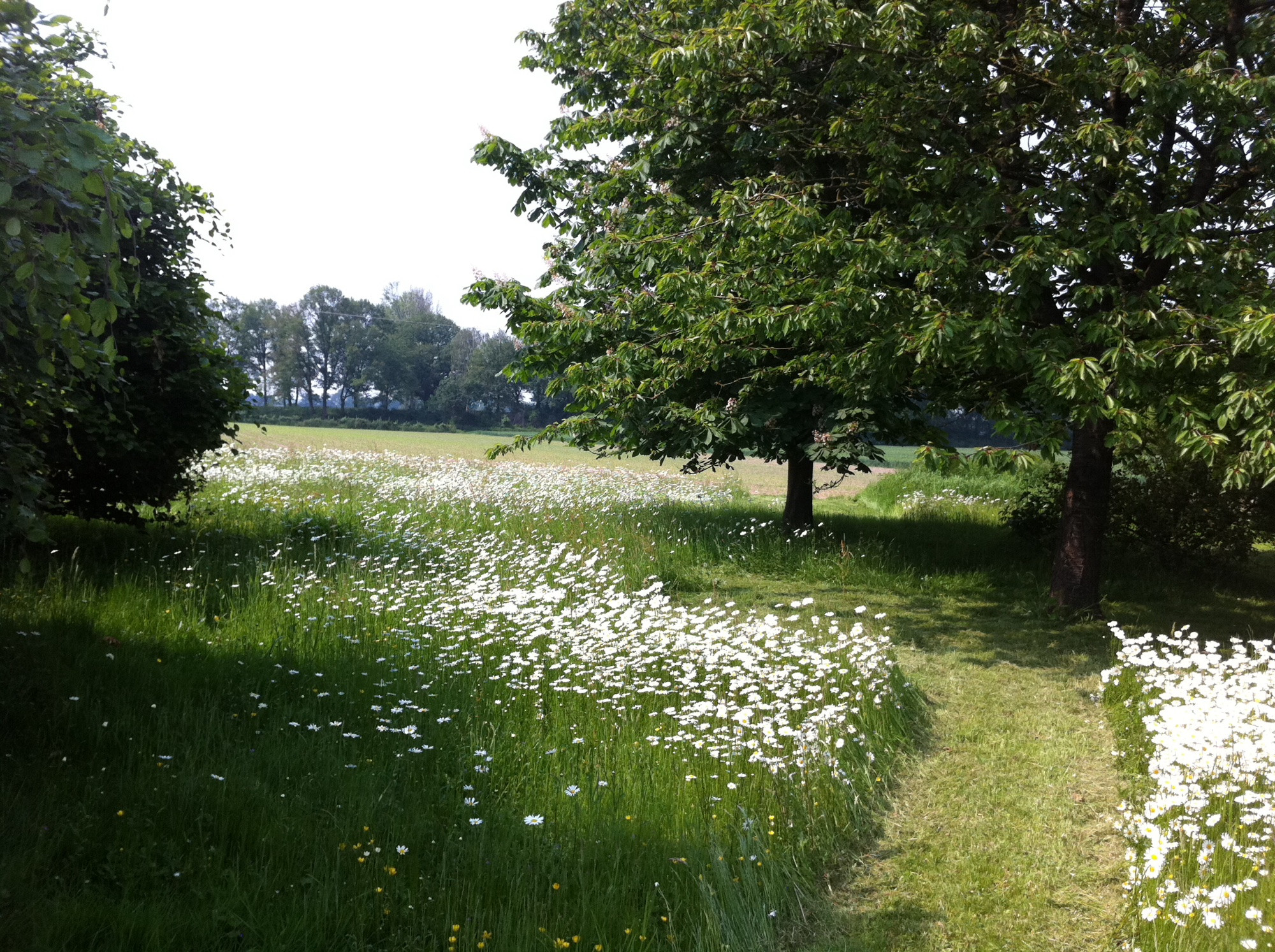 Wiesenmargariten, Hahnenfuß, Löwenzahn, Gänseblümchen weiter hinten.