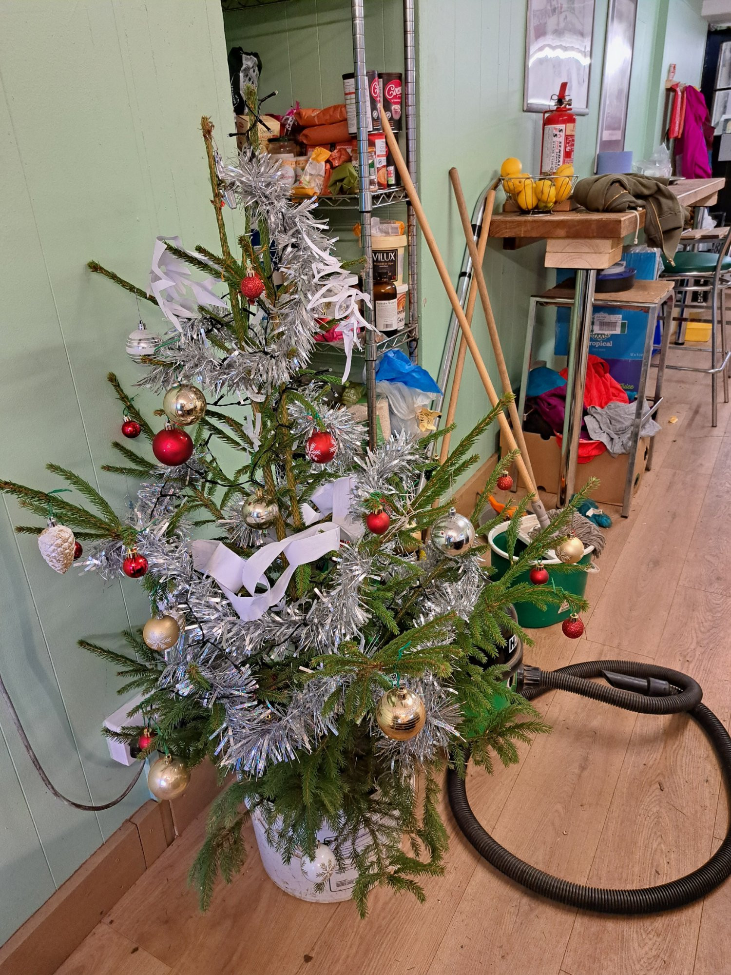 Wir (das Diner - Gemeinschaftsraum und -küche der Wwoofer auf der ChurchFarm in Ardeley) haben auch einen Weihnachtsbaum ! Diesen hab nicht ich geschmückt, aber mir gefällt die Deko.
