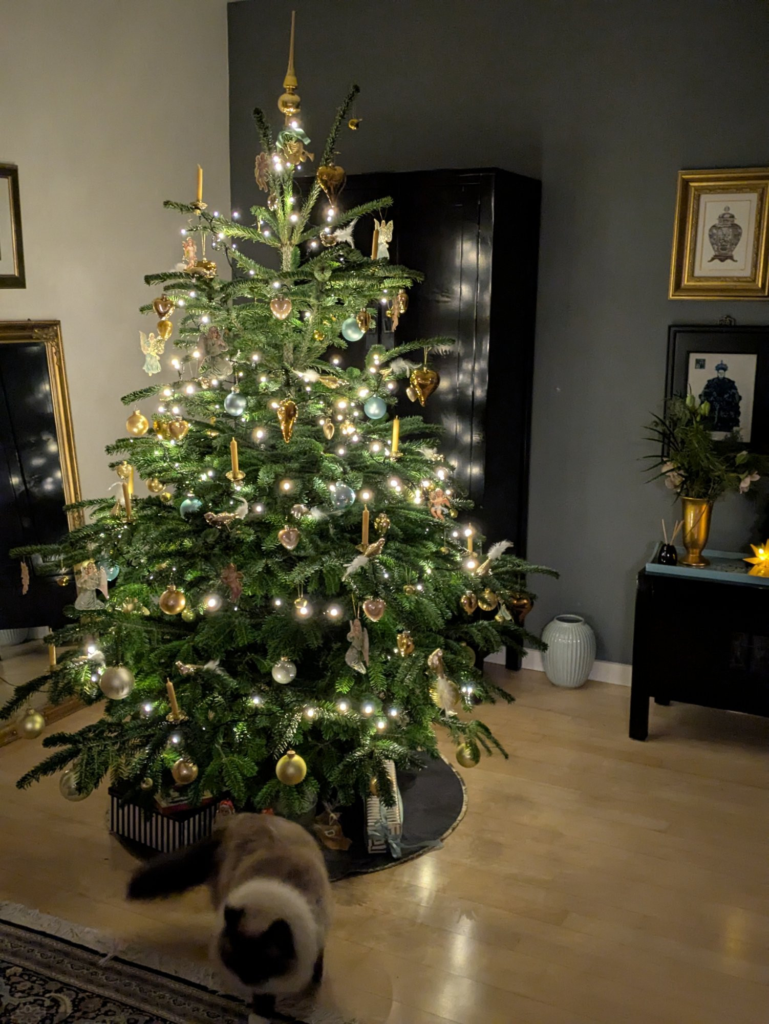 Hier kommt der Baum auch immer früher ins Zimmer. Dieses Mal am Sonnabend und gestern habe ich ihn dann geschmückt.