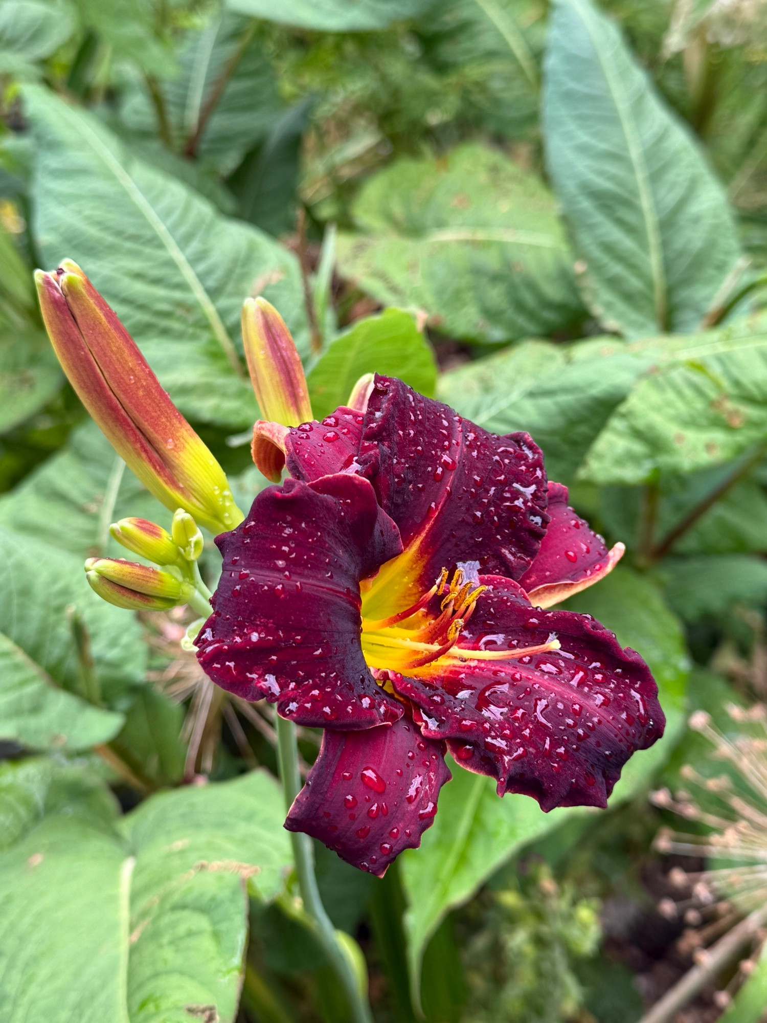 Heuchera, Taglilie, Nigella, Sedum acre, Polsterthymian, "Rasen", Kalifornischer Mohn.