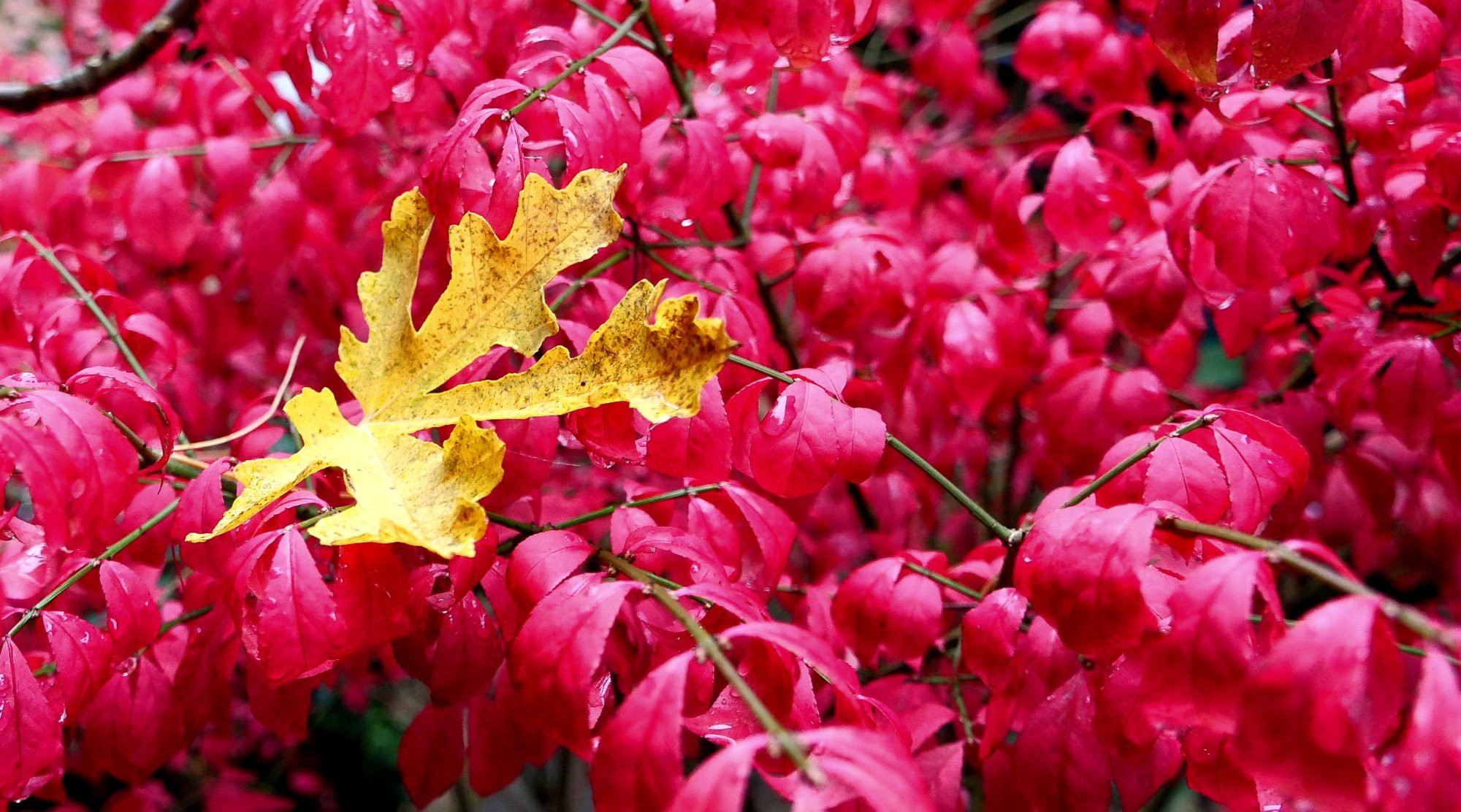 Feigenblatt (ice crystal) auf Eunonymus alatus compactus.
