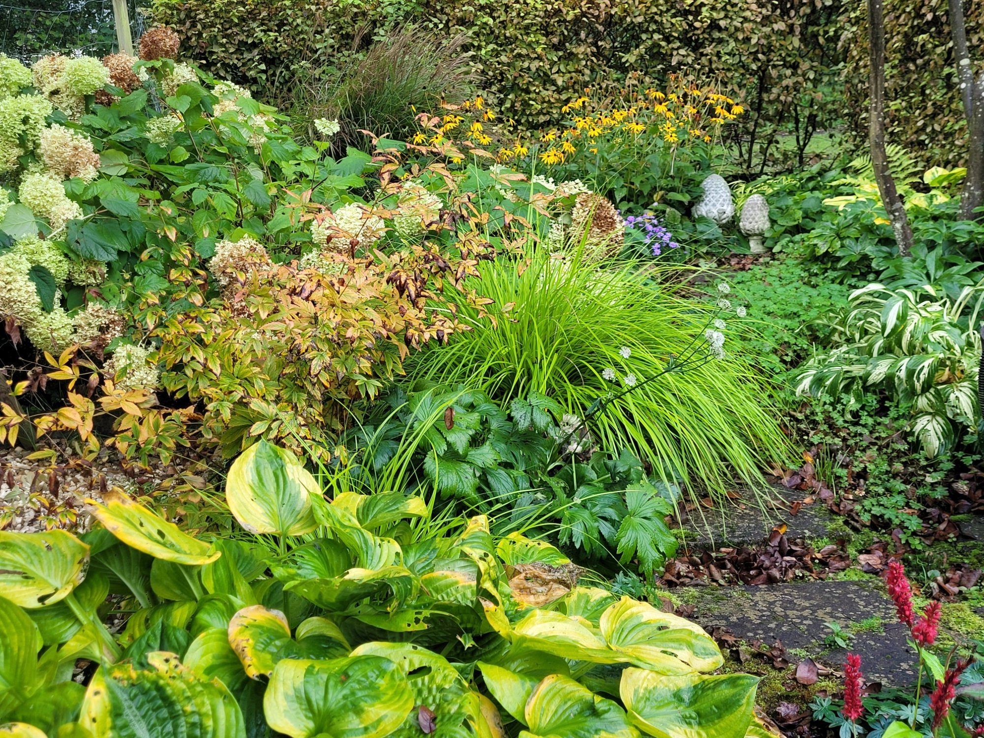 Dieses Carex everillo (?) steht schon seit mindestens 10 Jahren dort. Ansonsten Choysia, Sedum,Polygonatum u a.