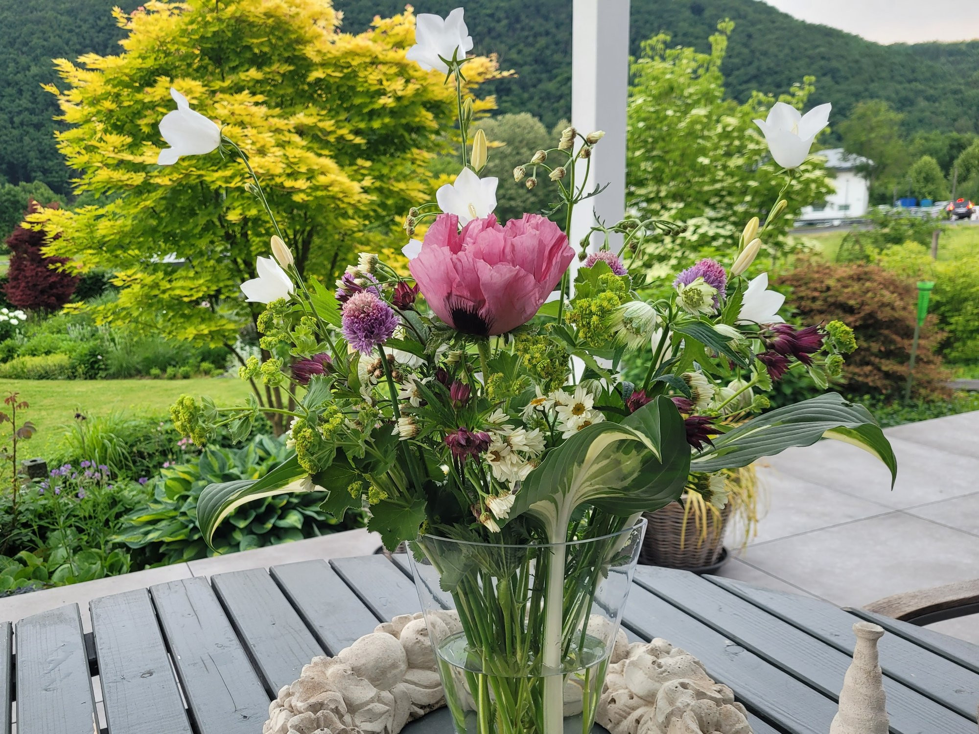 Mohn mit Allium und Rose.