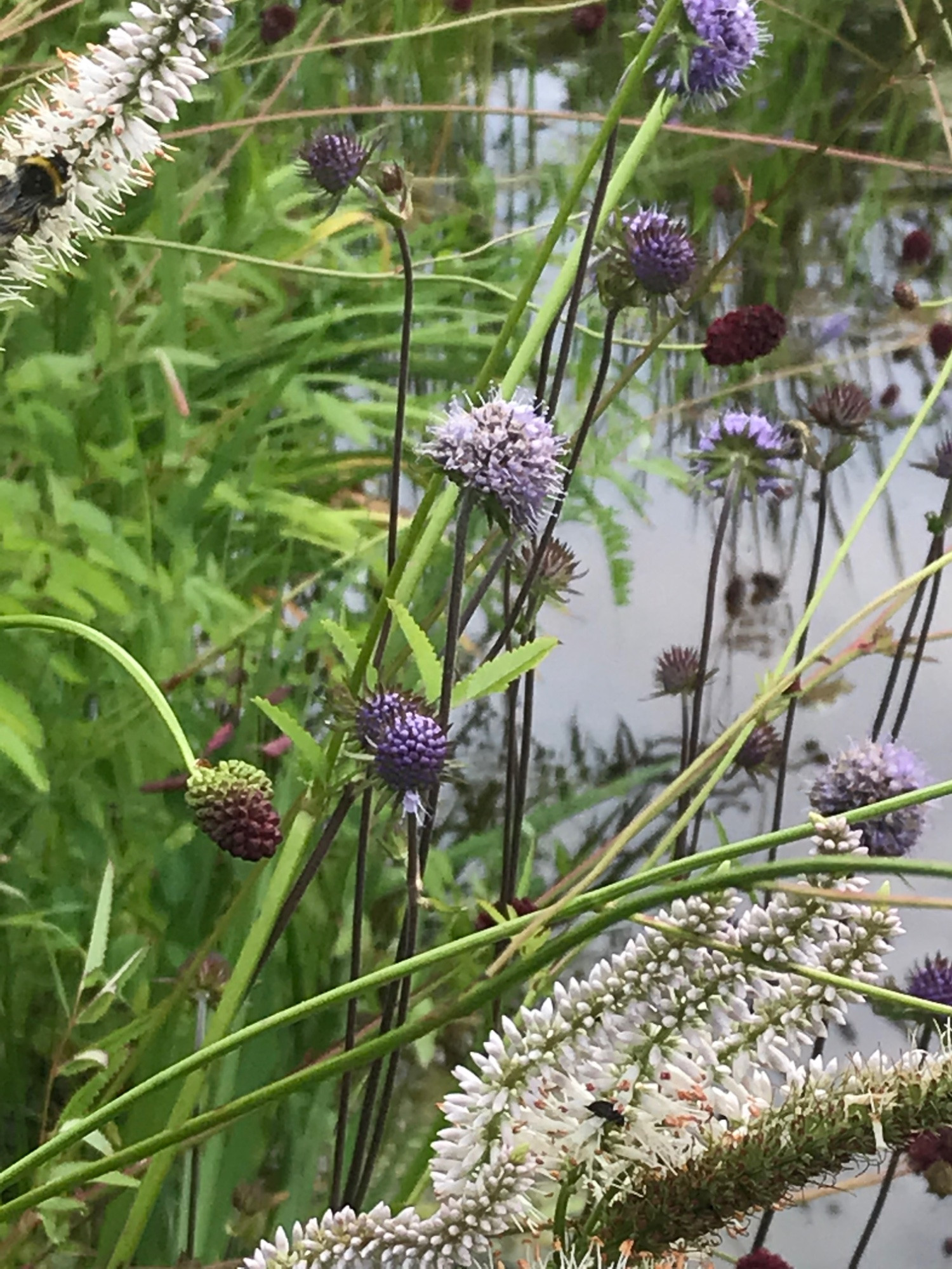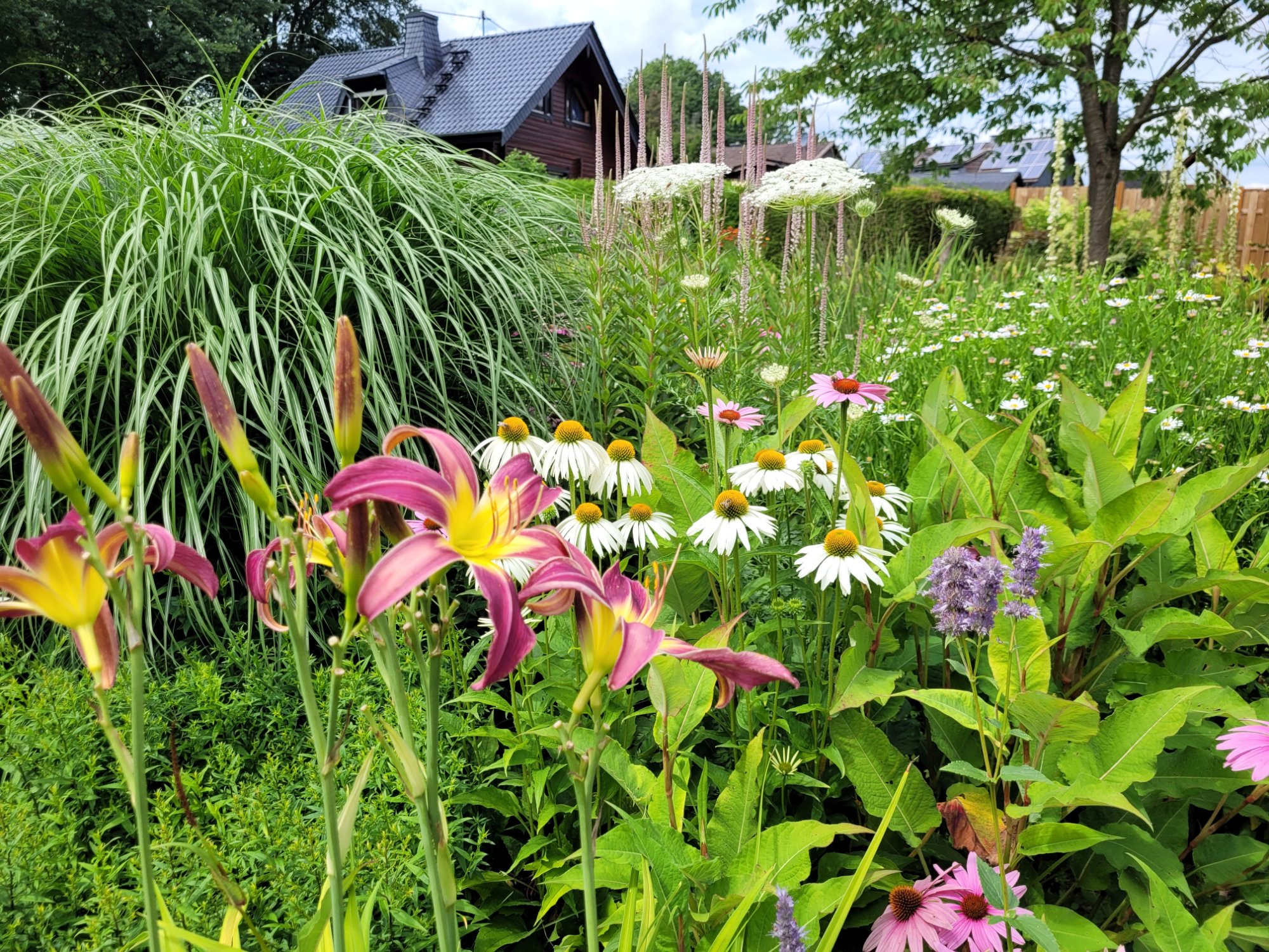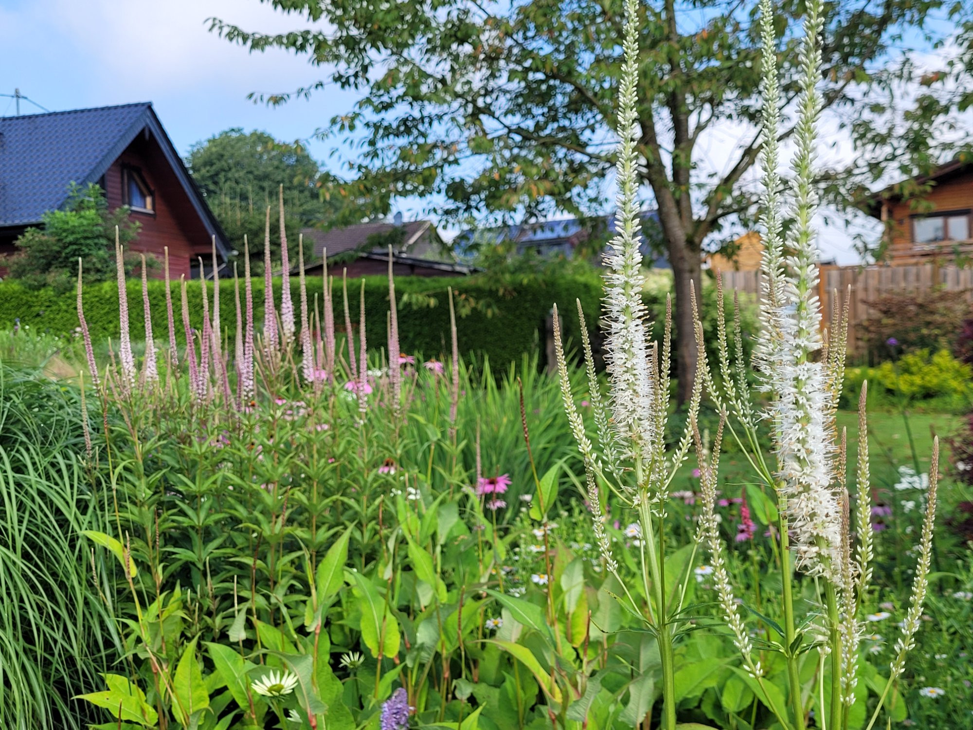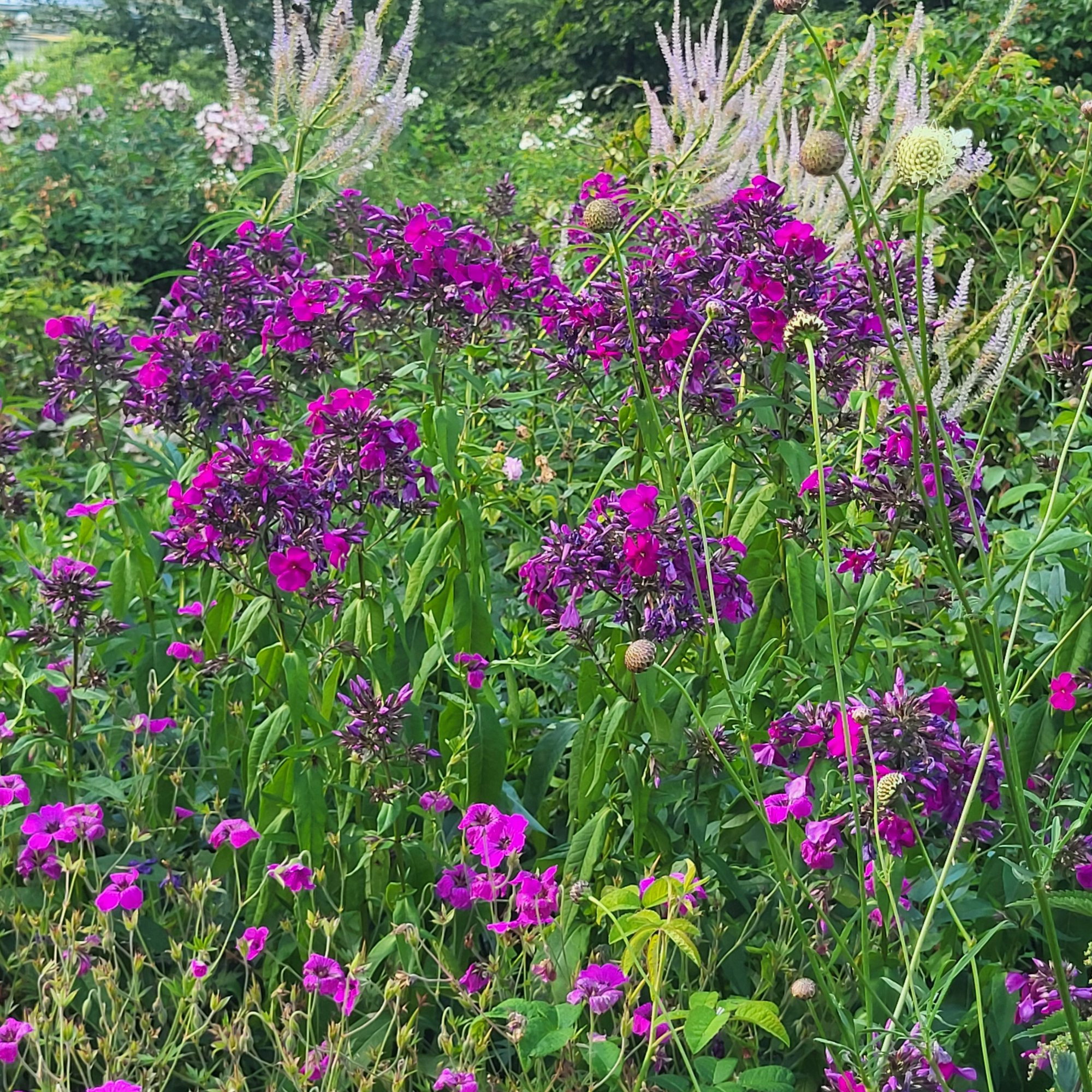 Aber neben Veronicastrum ist Phlox zu sehen, Geranium und Cephalaria. Und auch eine Rose