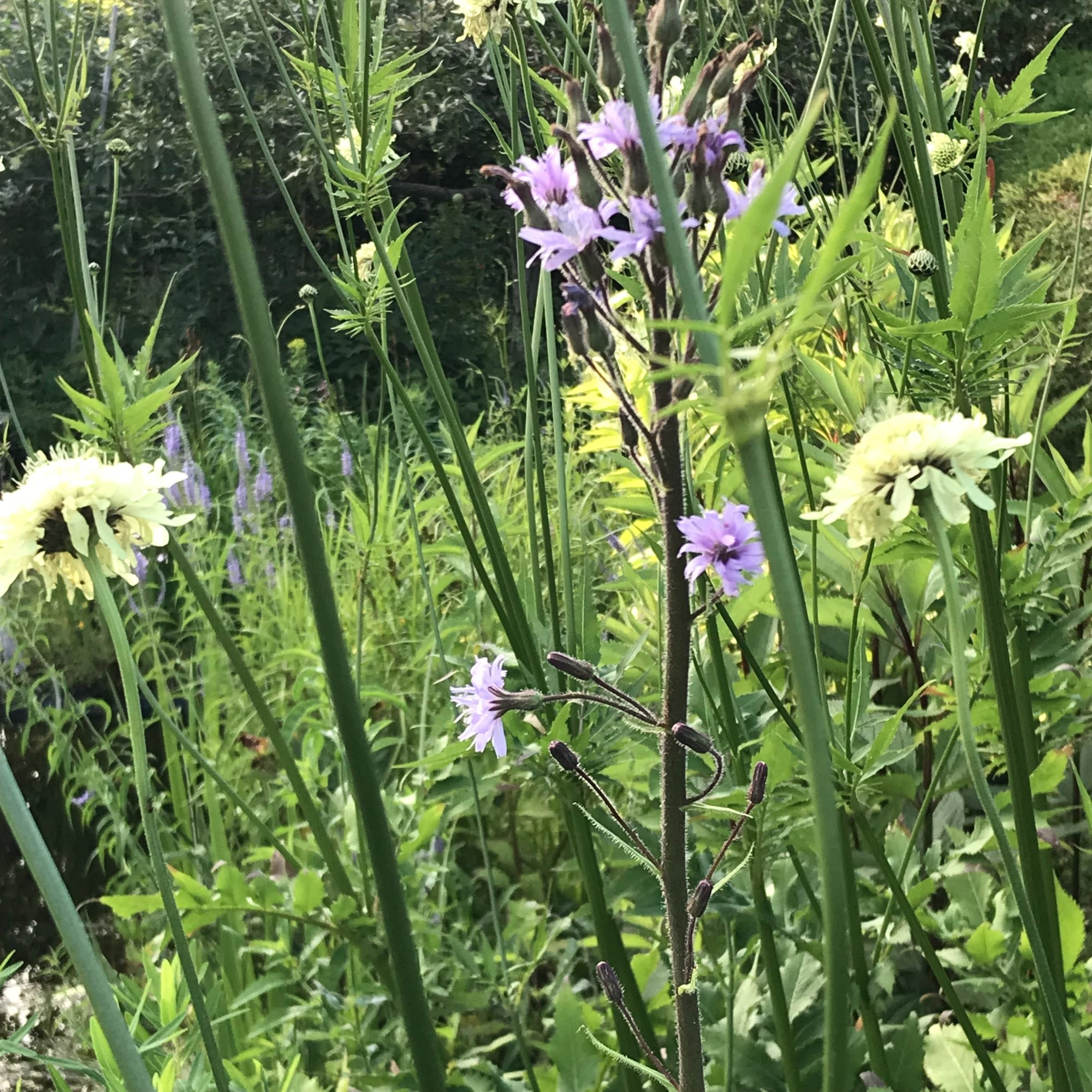 Hier erkennt man ganz links Cephalaria gigantea. Zum Anlegen bleibt auch noch anderes: