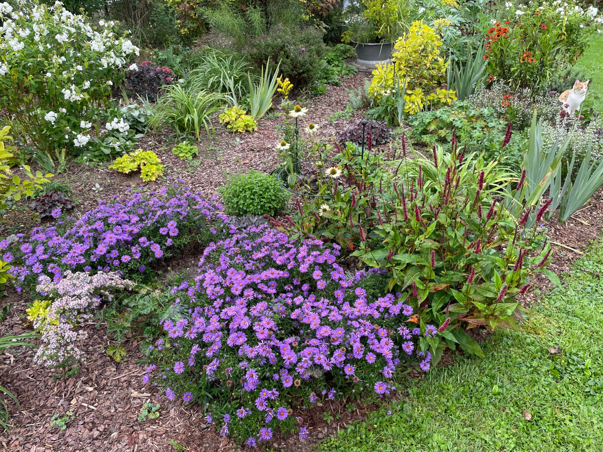 Aber neben Veronicastrum ist Phlox zu sehen, Geranium und Cephalaria. Und auch eine Rose