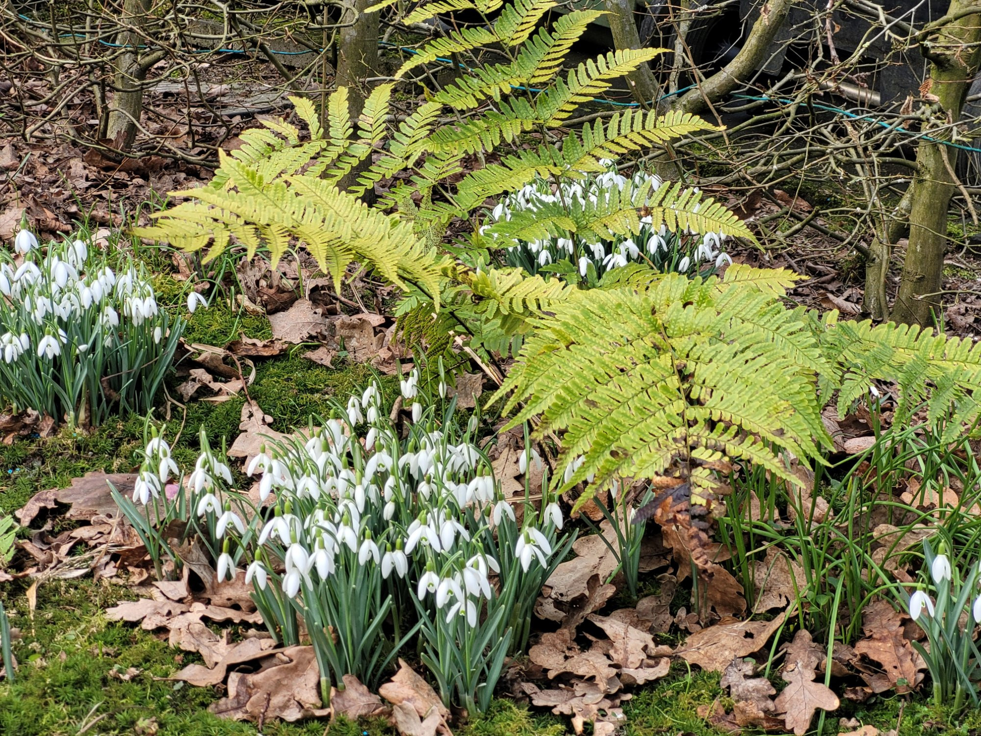 Narzissen, vorne Oktoberle, im Hintergrund Helleboren