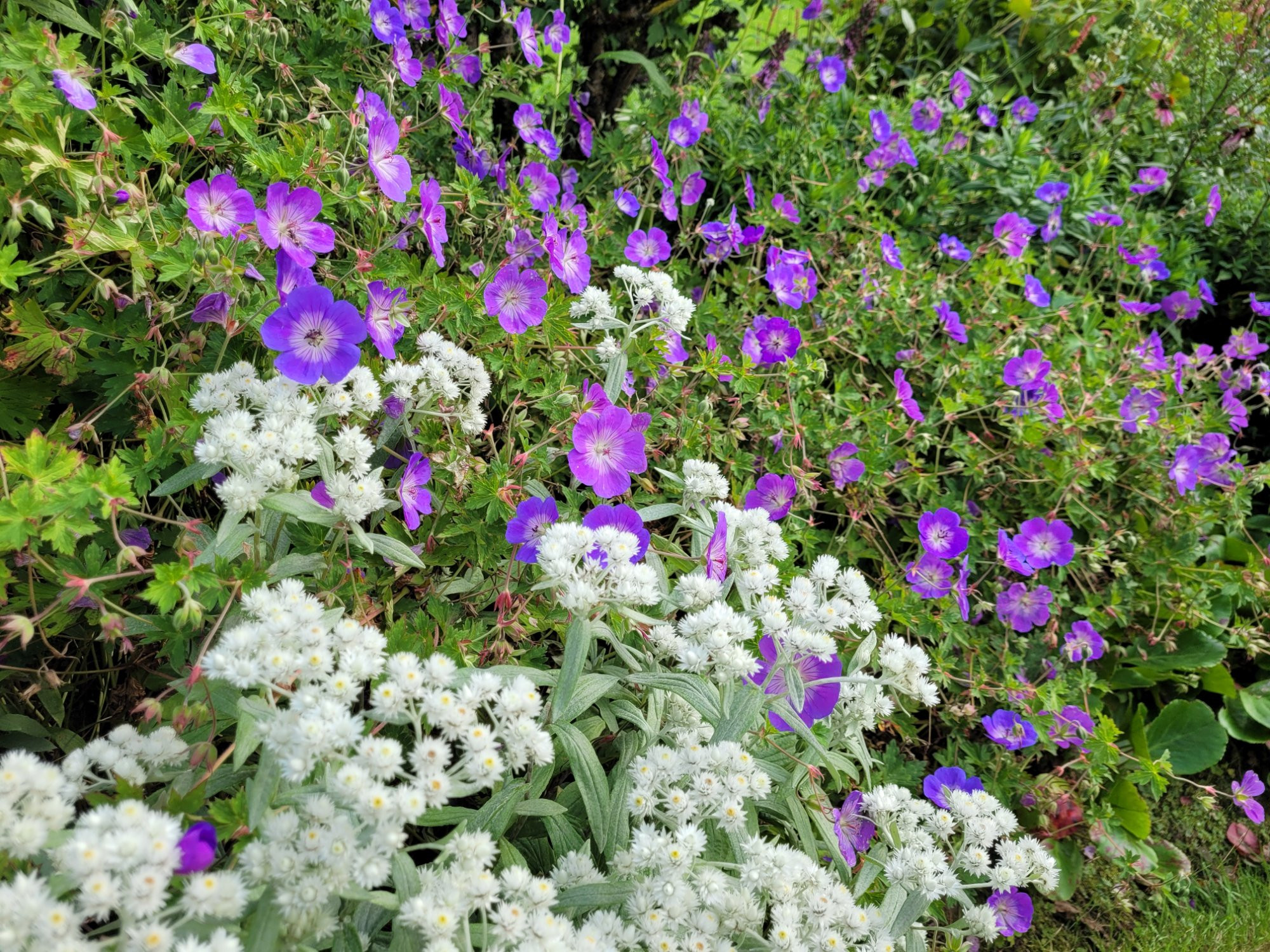Nochmal Rozanne, jetzt mit Silberimmortelle...