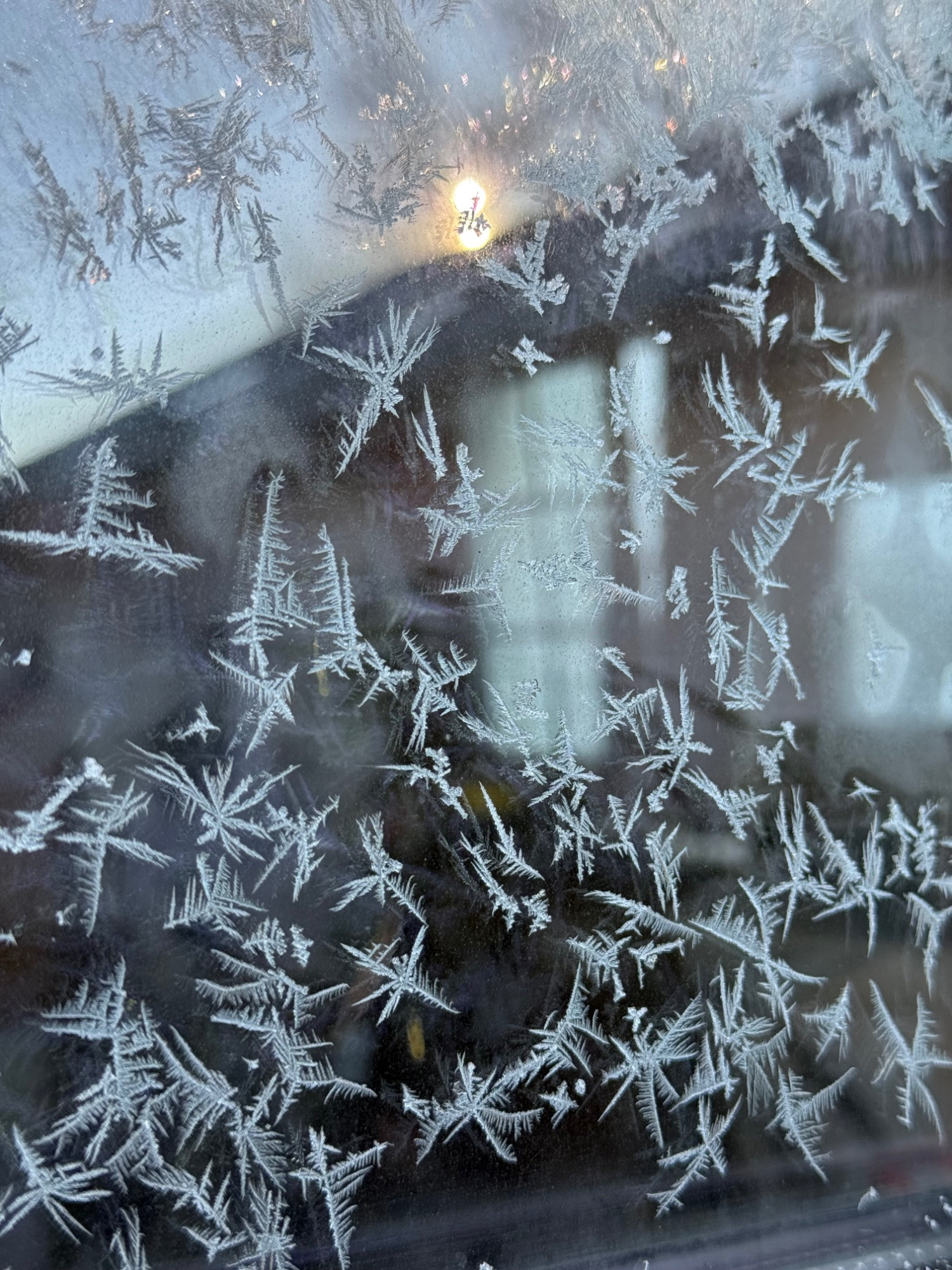 Die eisblumen sind aktuell im Dezember ein netter Ersatz für Schnee zu Weihnachten gewesen , wobei es jetzt gerade sogar schneit