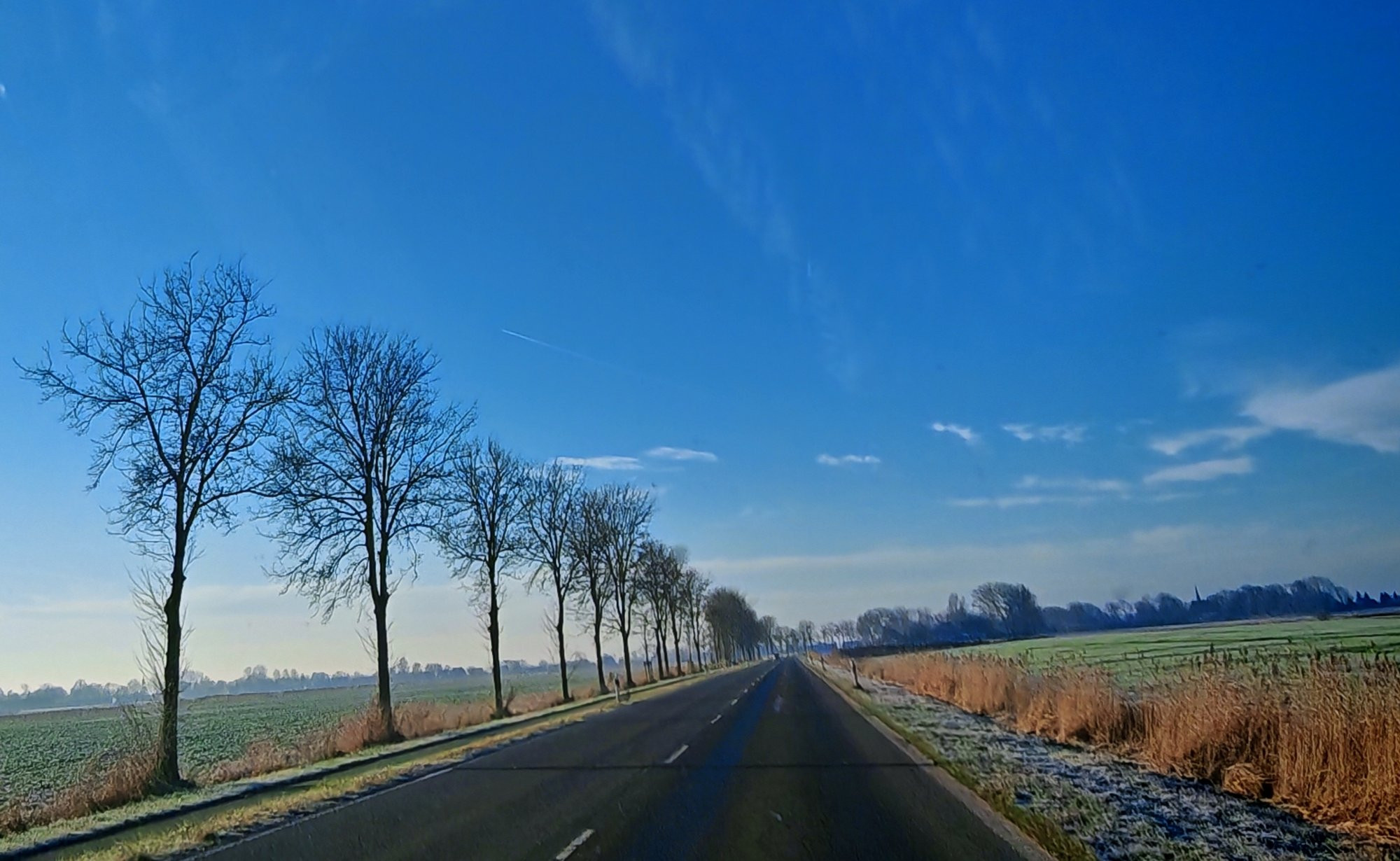 Gestern frühmorgendliche Fahrt durch Nordfriesland, zuerst noch im Nebel, dann zunehmend sonnig, während der Fahrt durch die Scheibe fotografiert...