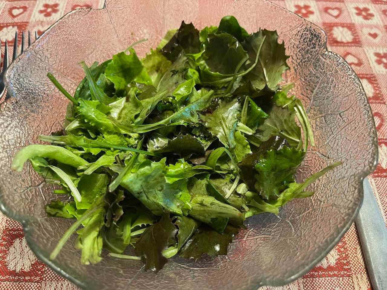Auch heute wieder kalte Küche: Vorspeise Blattsalat-Mix mit Kürbiskernöl
