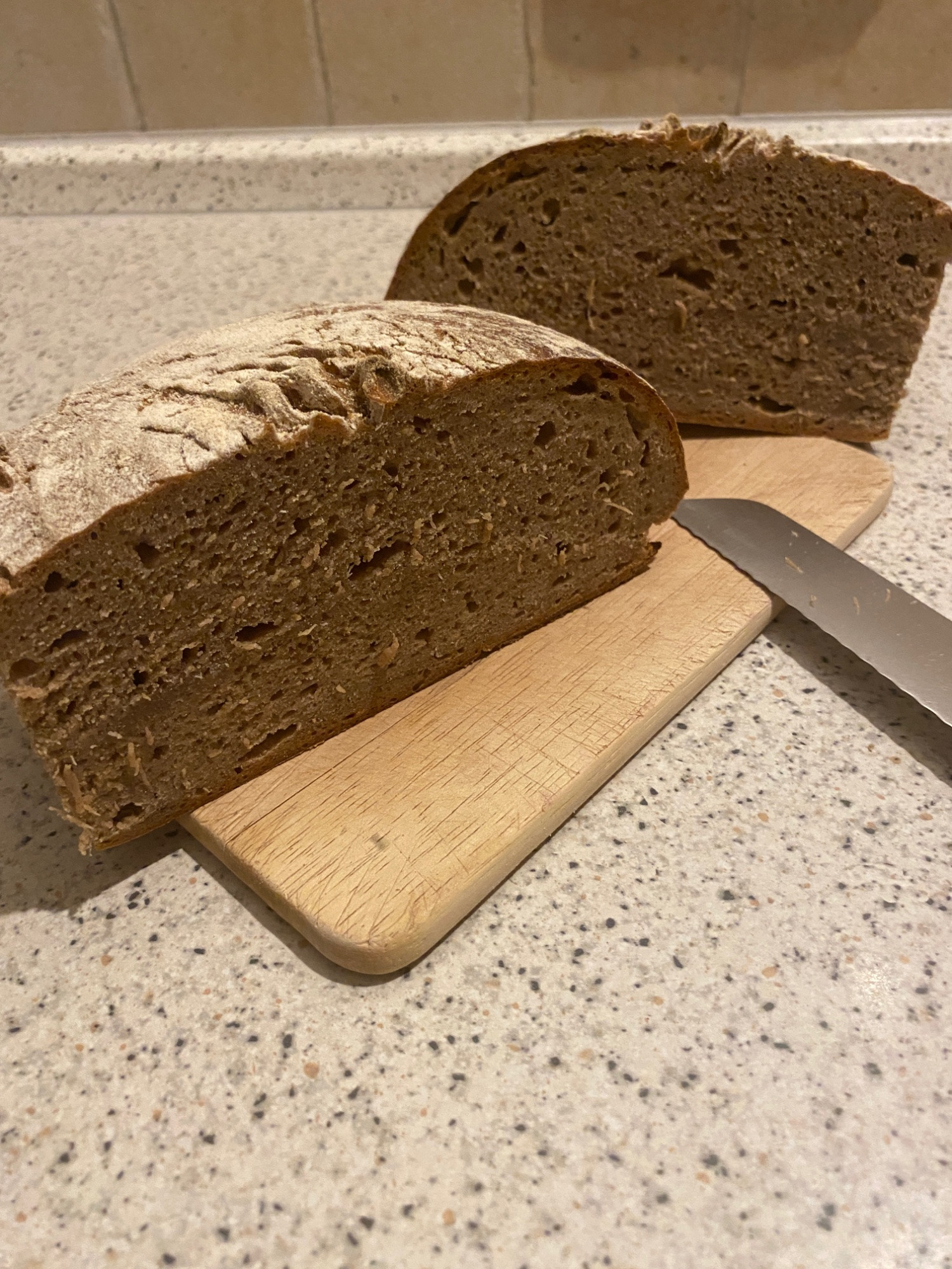 Mein letztes Roggenmischbrot, über ca. 16 Stunden bei aktueller Raumtemperatur geführt.