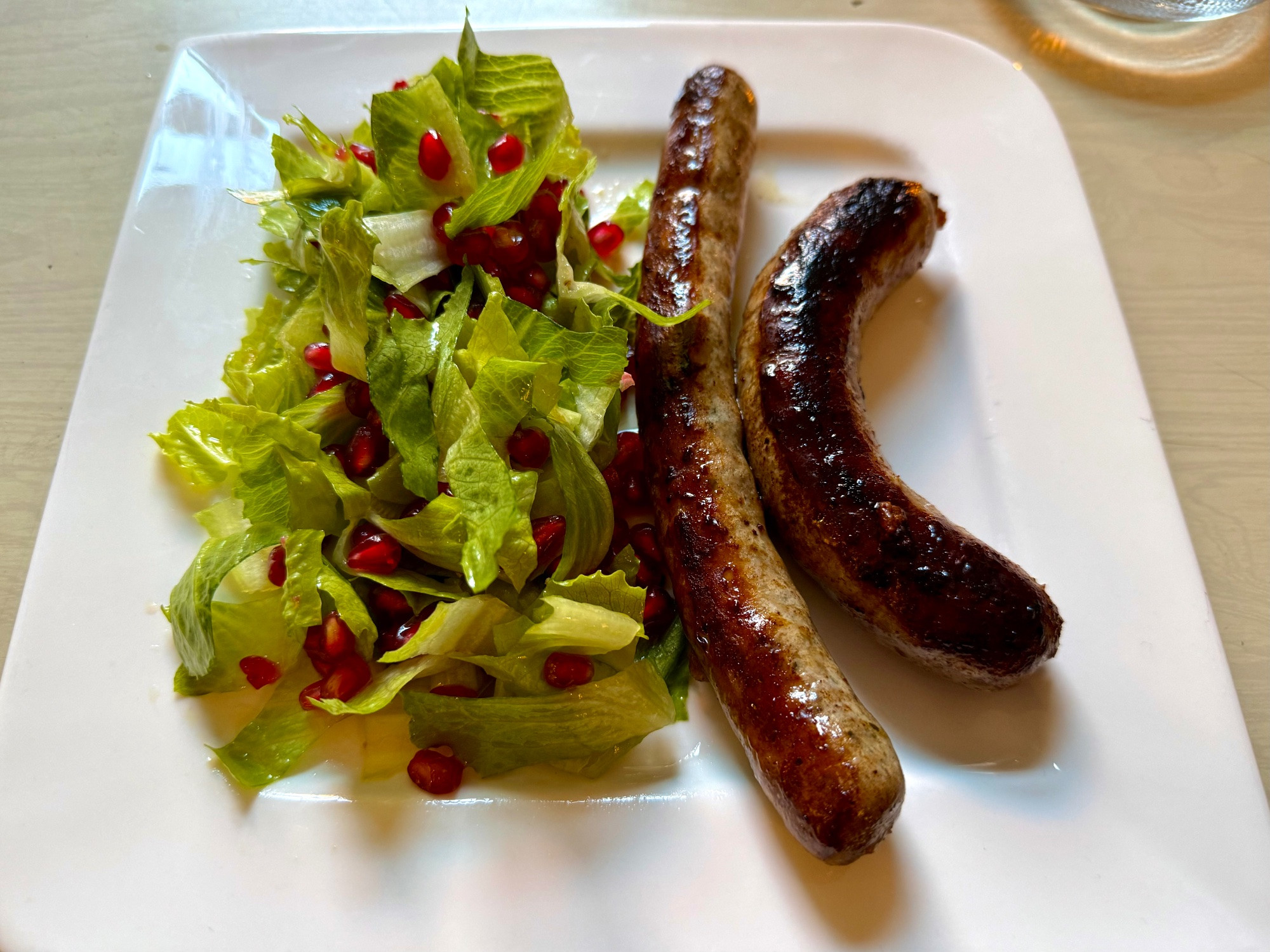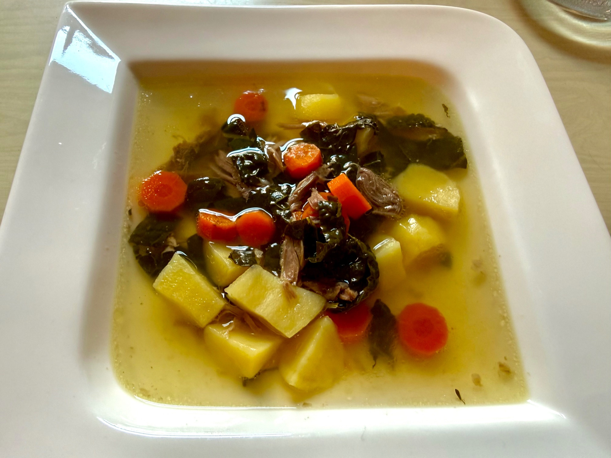 hier heute mittag gänsekleinsuppe mit gartenschwarzkohl und zweierlei bratwurst (schlesische