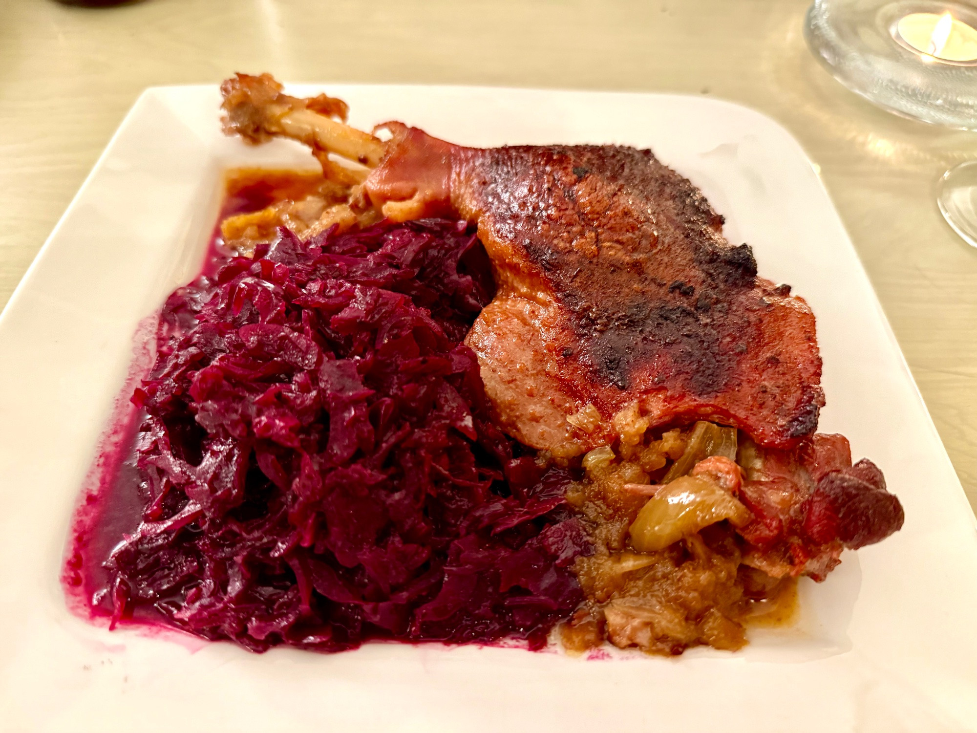 … gestern abend kurz vor schluss beim panikeinkauf aufdringlich gewordene gänsekeule mit selbstgekochtem rotkohl…