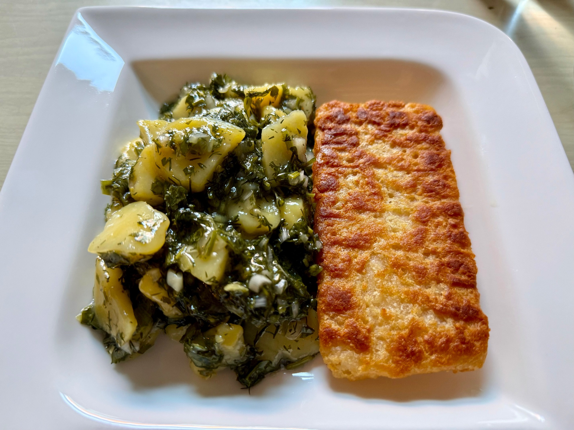 … und heute irgendwann zwischendurch gebastelter grüner kartoffelsalat mit tk-backfisch
