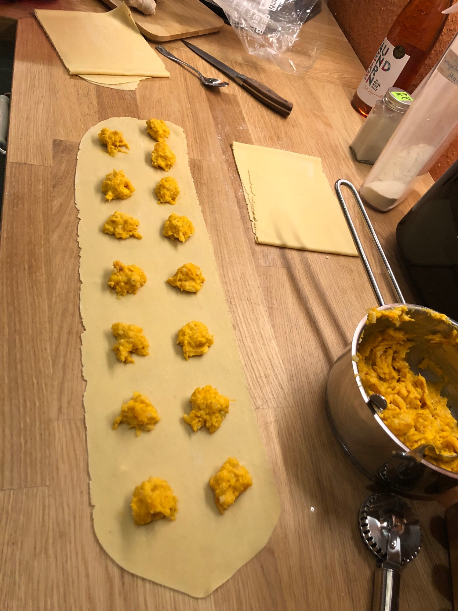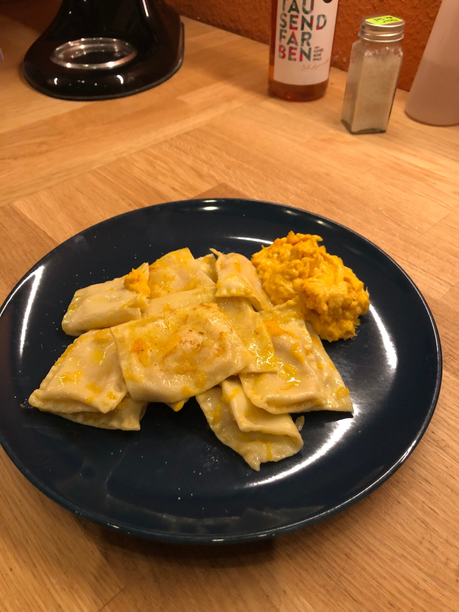 Generell überwürze ich alle Füllungen, weil doch recht viel Teig drumherum ist. Bei Kürbis finde ich Chili, Zitronenabrieb und Ricotta, Parmesan oder Peccorino in der Füllung gut.