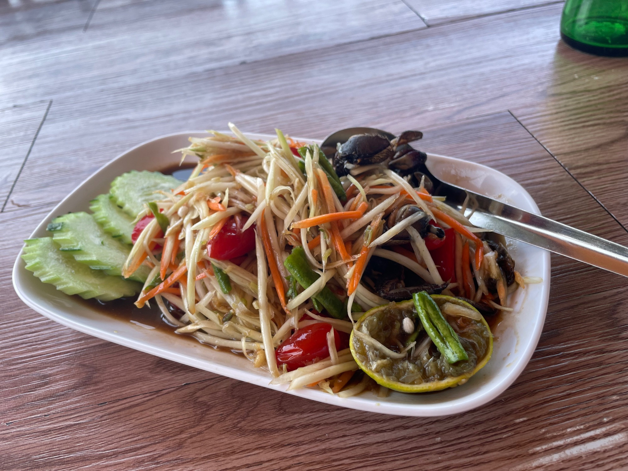 Som Tam Poo Plara, grüner Papaya Salat mit fermentierter Krabbe.