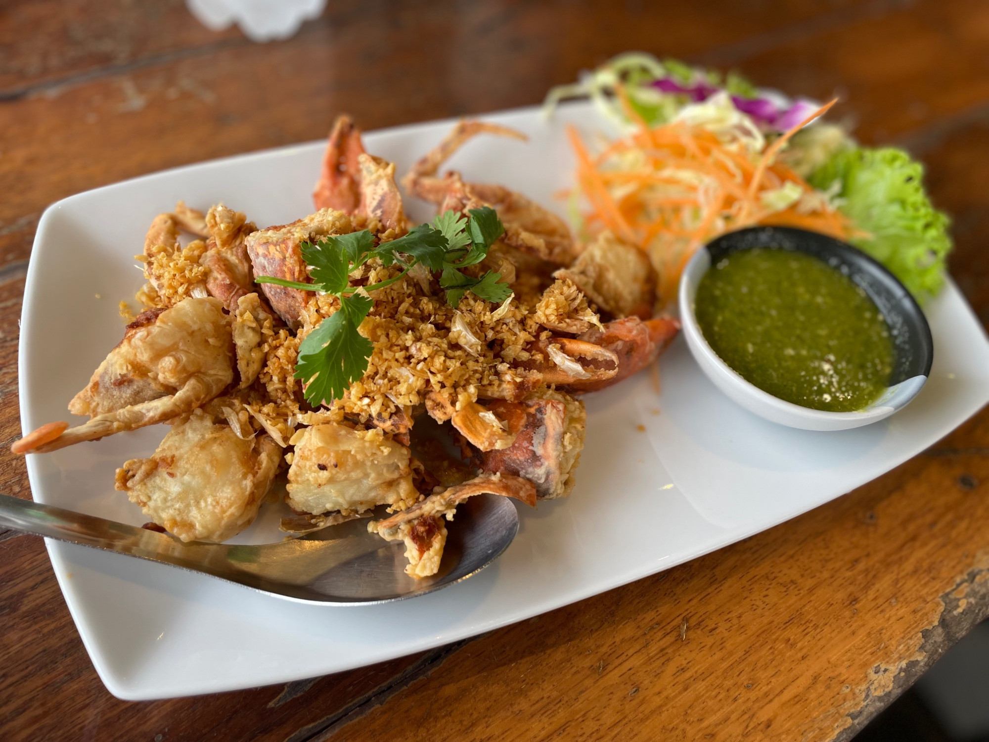 Garnelen mit viel Knoblauch-Ingwer Knusper und Softshellkrabben