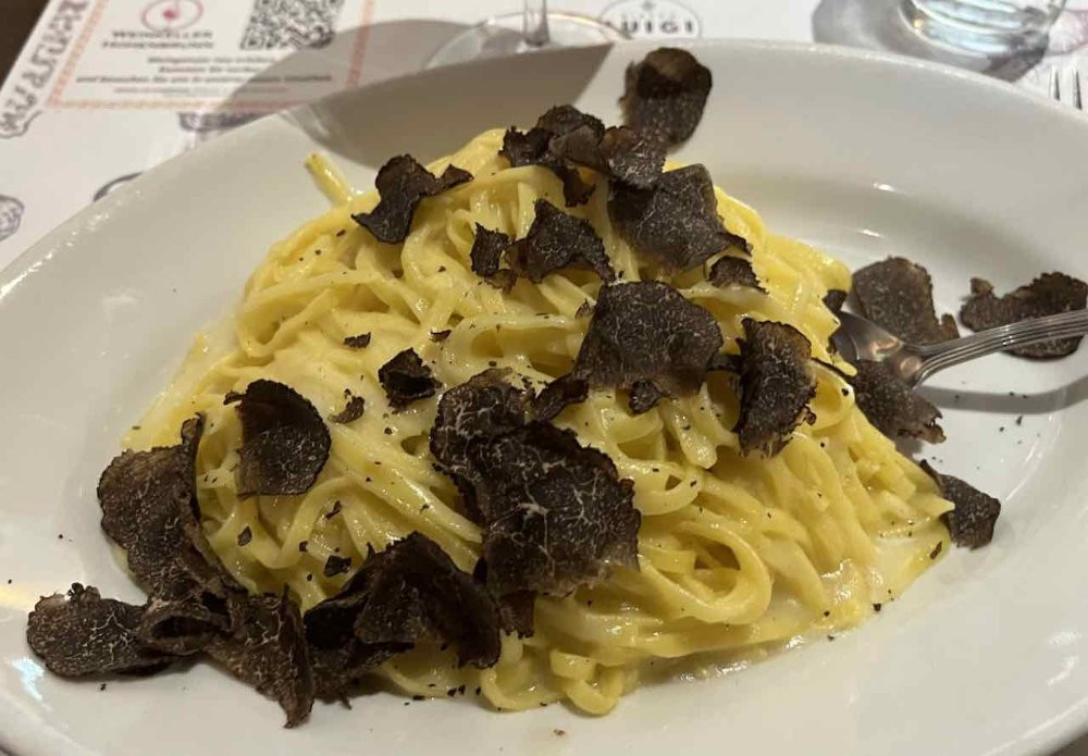 Heute beim Italiener: Bavettine mit schwarzem Trüffel zum Cannonau "Tonaghe" aus Sardinien