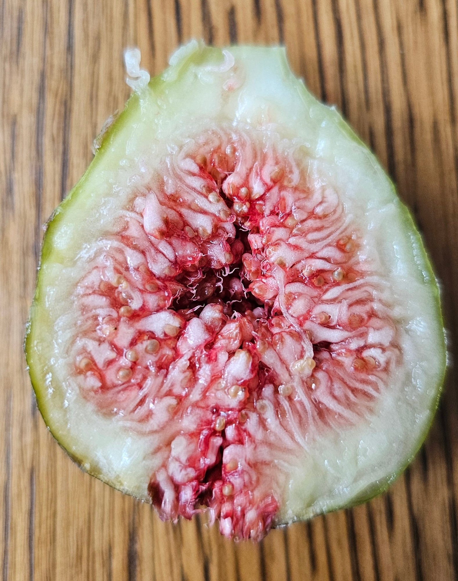 Dieses Jahr habe ich die erste Feige geerntet, müsste schon eine Breba gewesen sein, die war leicht braun und im Geschmack überraschend gut, halbwegs saftig, mit Süße und etwas Aroma. Ein paar andere Feigen vom Nachbarn, der die letzten Jahre immer welche rübergereicht hat, schmeckten da irgendwie grasiger, auch wenn sie relativ braun-violette waren (allerdings vermutlich Spätfeigen)