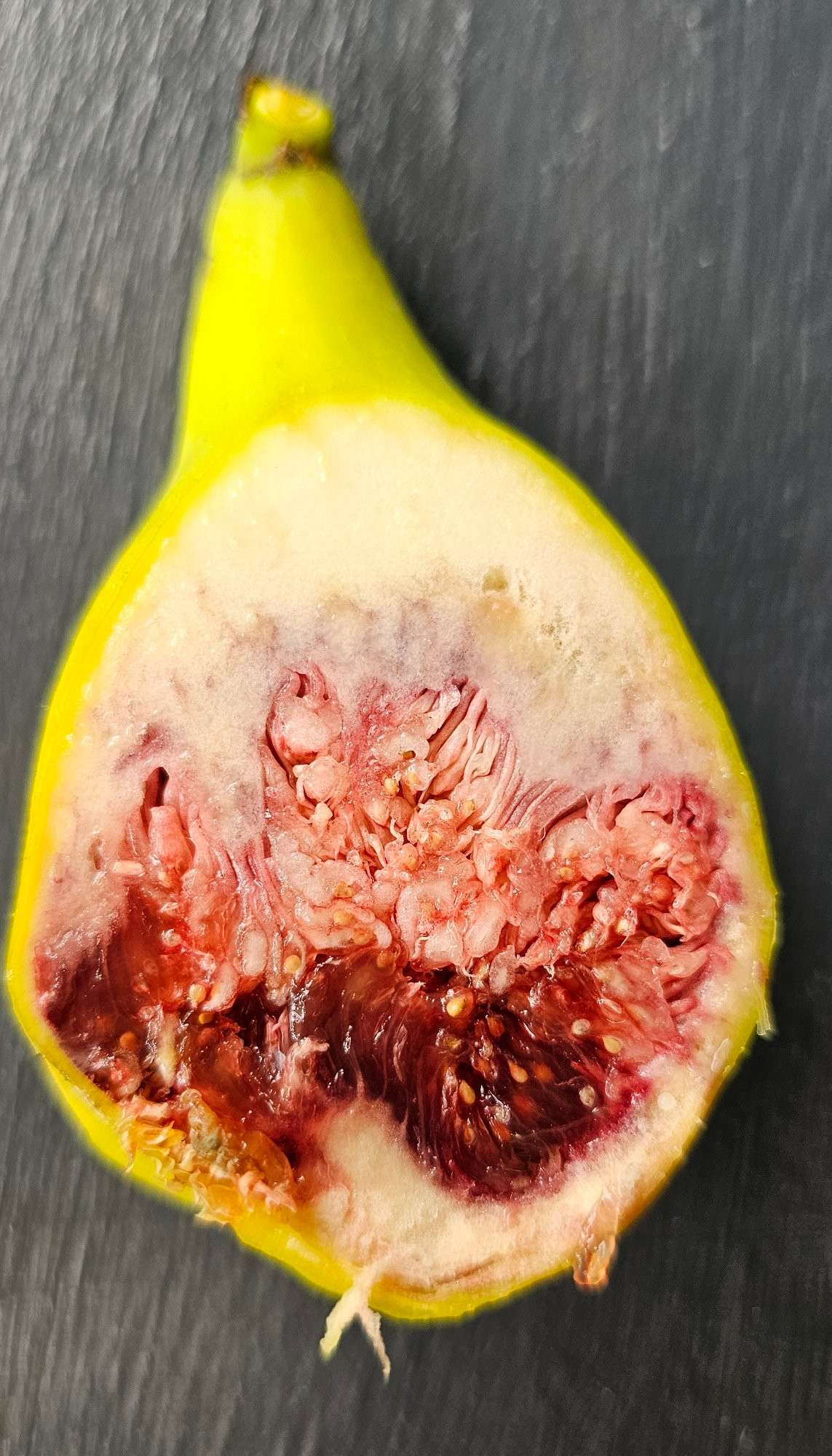 Wie man gut sehen kann ist sie unten schon überreif und oben leider noch total trocken. Ging direkt in die Tonne.