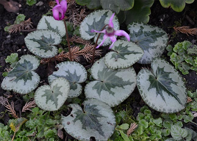 C.hederifolium "silver leaf form" - es geht auch ganz ohneZeichnung, aber ehrlich gesagt, die mit gefallen mir viel besser.C. "silver leaf form" sind aus GdS-Samen gezogen. Danke!Bin im Garten.