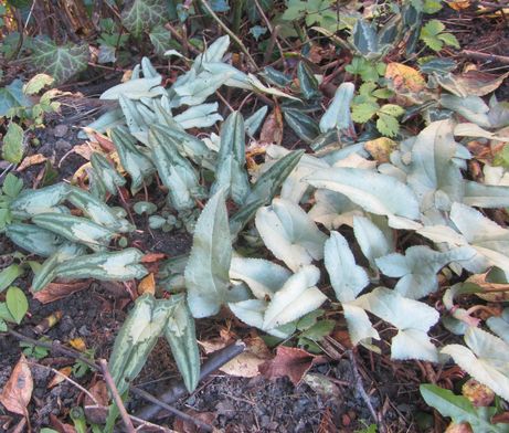Mir ist das auch schon aufgefallen. Ich lasse die Blätter so liegen, wie sie fallen.Die Cyclamenblätter haben den Vorzug auch später noch längere Stängel zu machen falls sie mal zugedeckt sind. Sie kriechen also ans Licht. Wenigstens ist mir das bei hederifolium aufgefallen.