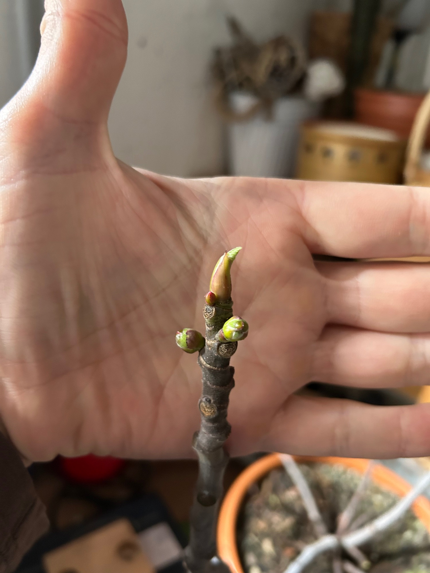 Die Little Miss Figgy legt los im Winterquartier! Dieses Jahr könnte es die ersten Früchte geben. Meine Veredelungen von Celeste, Improved Celeste und Michurinska Green sind auch angegangen und treiben aus!
