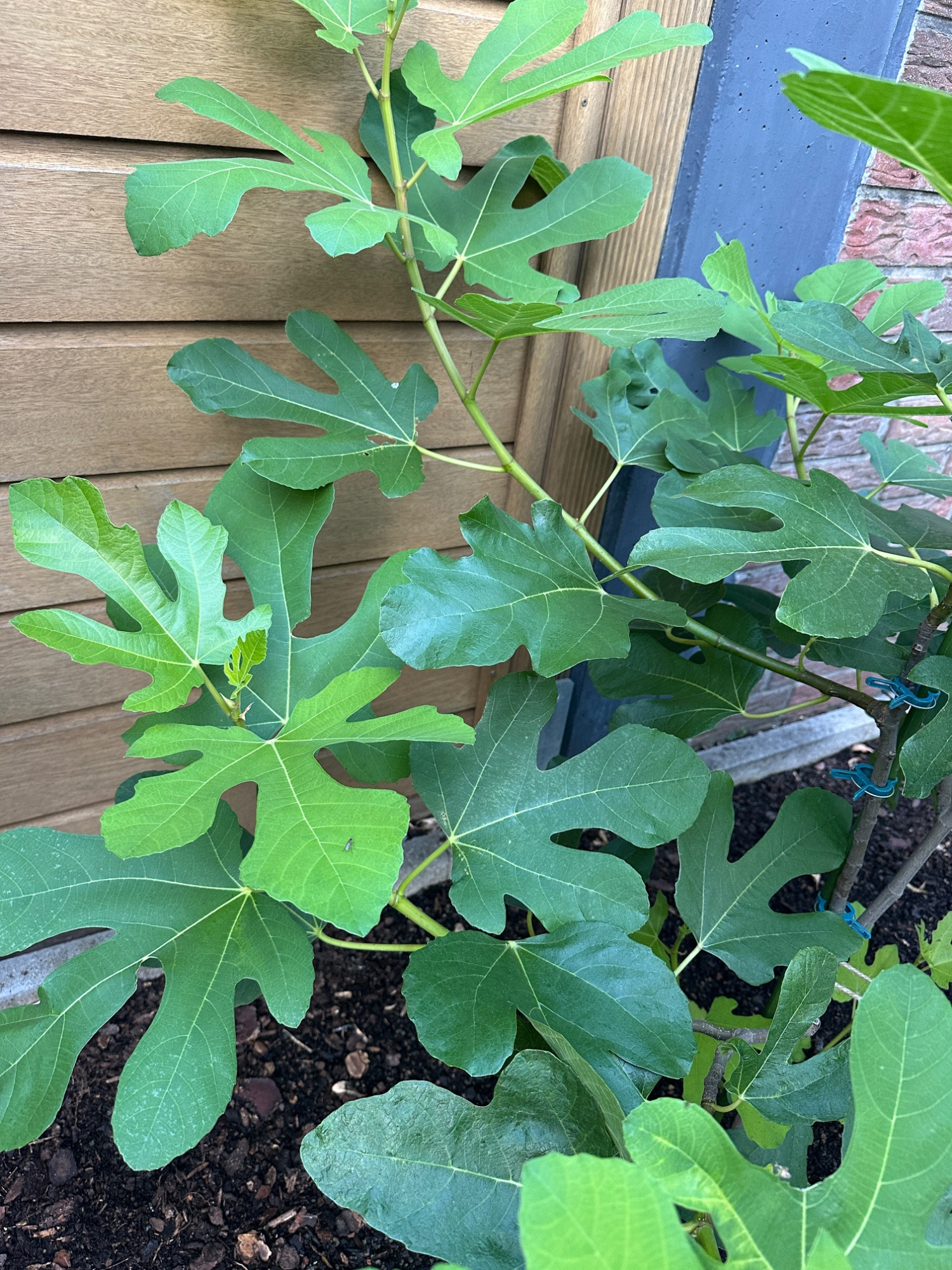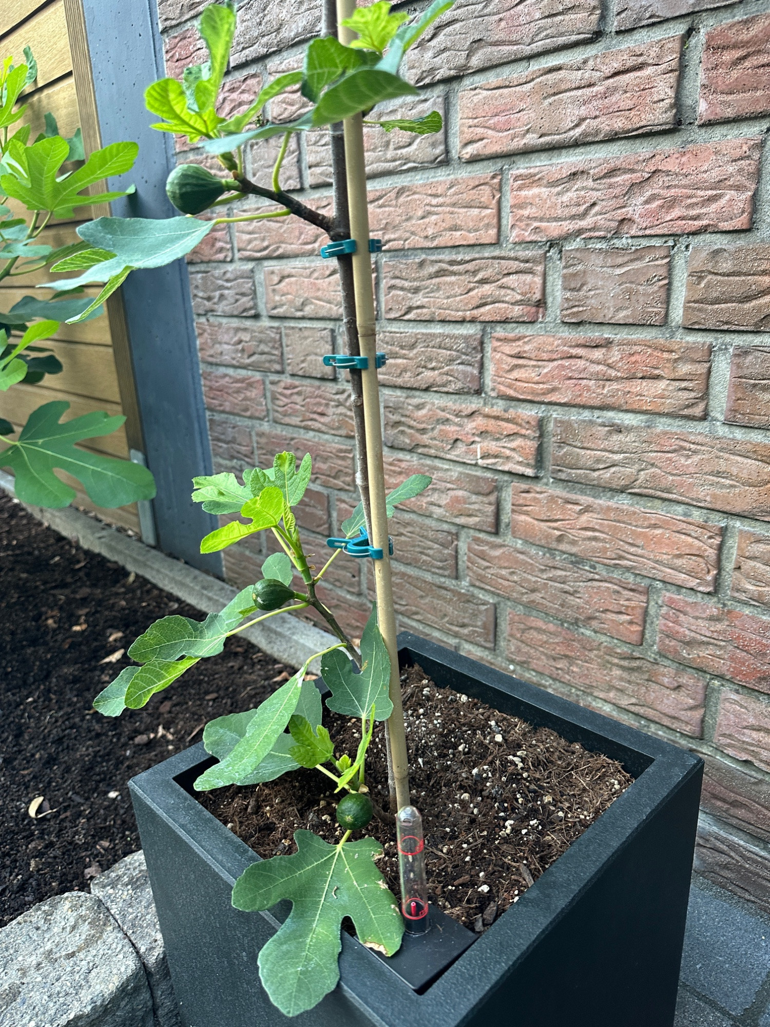Im Frühling ist dann eine Rivers Brown Turkey dazugekommen, welche im Topf gedeiht. Dort sind die ersten Feigen zu sehen.