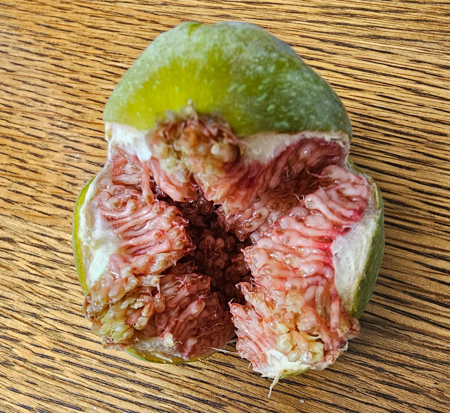Breba von einer Abmoosung meiner RdB im Topf. Außen sah sie schön aus, innen hätte sie noch ein paar Tage gebrauchen können.