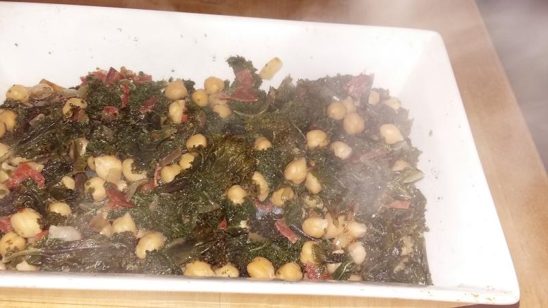 Hier gab es gerade ein superleckeres Essen. Heute gab es auf dem Markt roten Grünkohl ;), den habe ich natürlich sofort gekauft. Es gab also Kabeljau mit Kichererbsen und Grünkohl (Zwiebel und Chorizo) aus dem Ofen.
