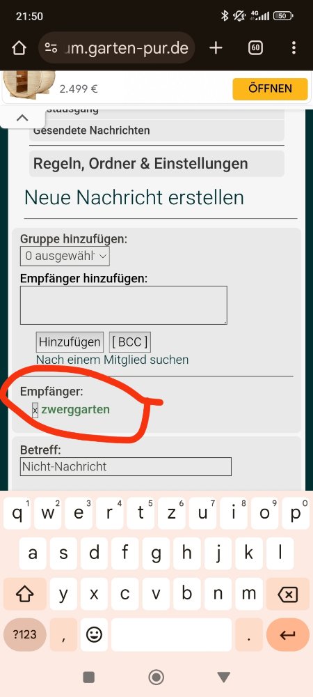 ich kann mir vorstellen, dass susanne übersieht, dass beim antworten tatsächlich schon der adressat gesetzt ist, davor kommen aber auch bei mir jede menge auswahlfelder einschließlich eines bereichs, in dem ich diverse adressaten auswählen soll bzw. könnte – erst deutlich weiter unten und mobil hochkant nicht gleich im sichtbaren bereich zu sehen wird dann das eigentlich mit der antwort adressierte usi angezeigt. jedenfalls mobil ist das erstens unübersichtlich und auch sehr verwirrend, bis man es kapiert hat. ein beispielhaftes bildschirmfoto kann ich leider nicht zeigen, ohne meine pn-kommunikation öffentlich zu machen, das möchte ich nicht.
