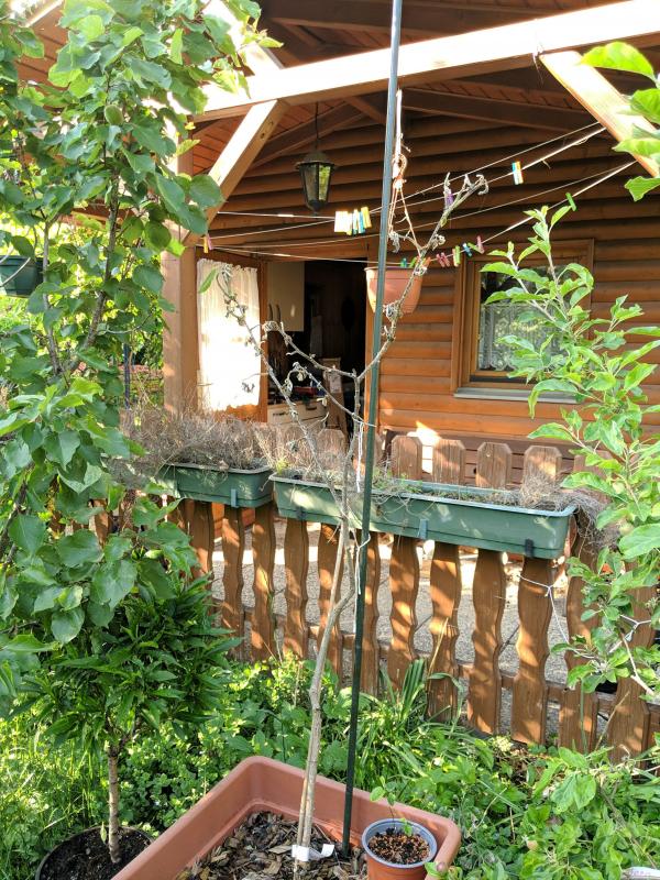 Ich bin gespannt, wie es ihnen dieses Jahr - nun, da sie besser eingewurzelt sind - mit der Sommerhitze geht. Sie stehen in ca 18L Töpfen, gegossen habe ich letztes Jahr in den ärgsten Hitzephasen morgens und abends.
