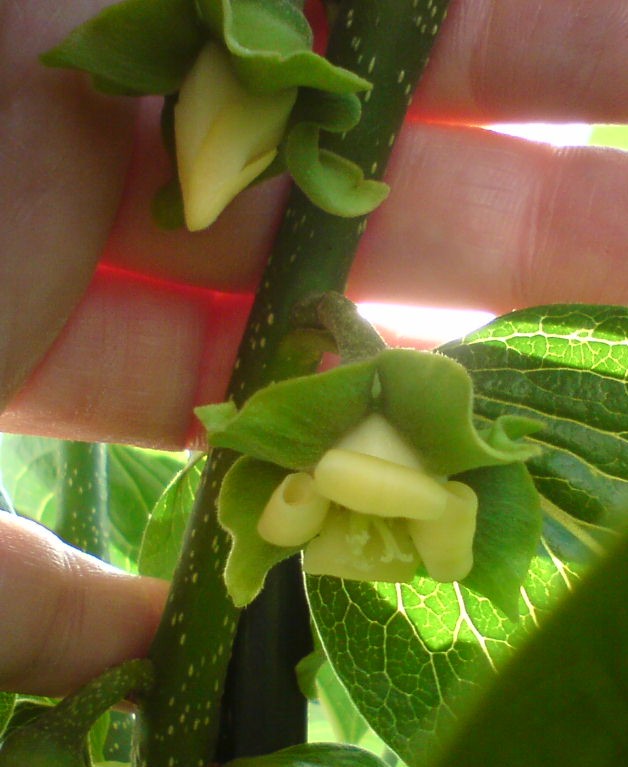 Ich habe mir eine Kaki "Ragno" im Topf andrehen lassen, die jedoch adstringierent ist. Da ich Erfahrung im Veredeln habe, werde ich sie wohl umveredeln. Der etwa 1,80m große Baum hat dieses Jahr vier dunkelrot bis braune Blüten.