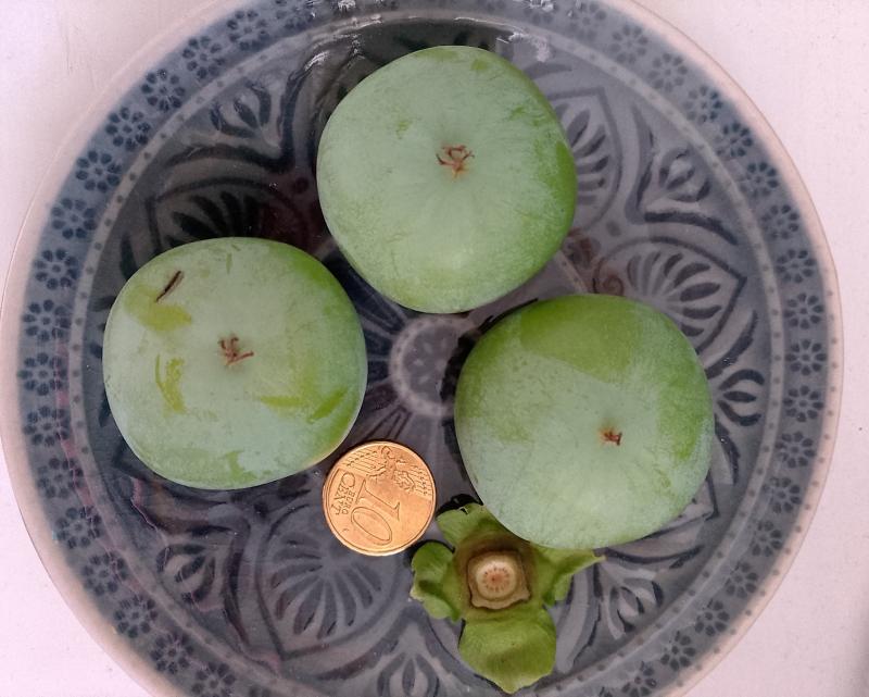Durch die trockene Hitze der letzten Tage kommt es jetzt verstärkt zu Fruchtfall, nachdem in den Sommermonaten keine Frucht abgeworfen wurde. Ich probiere die abgeworfenen Früchte nachzureifen, mal sehen wie's klappt...