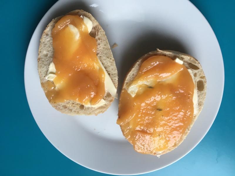 Es geht eigentlich. Abgekühlt schmeckt es ganz gut. Ich werde die Gläser an meine marmeladesüchtige Familie verteilen und schauen, was sie dazu sagen. Ich esse selber kaum Marmelade und wenn schon, dann bevorzuge ich die aus sauren Früchten.