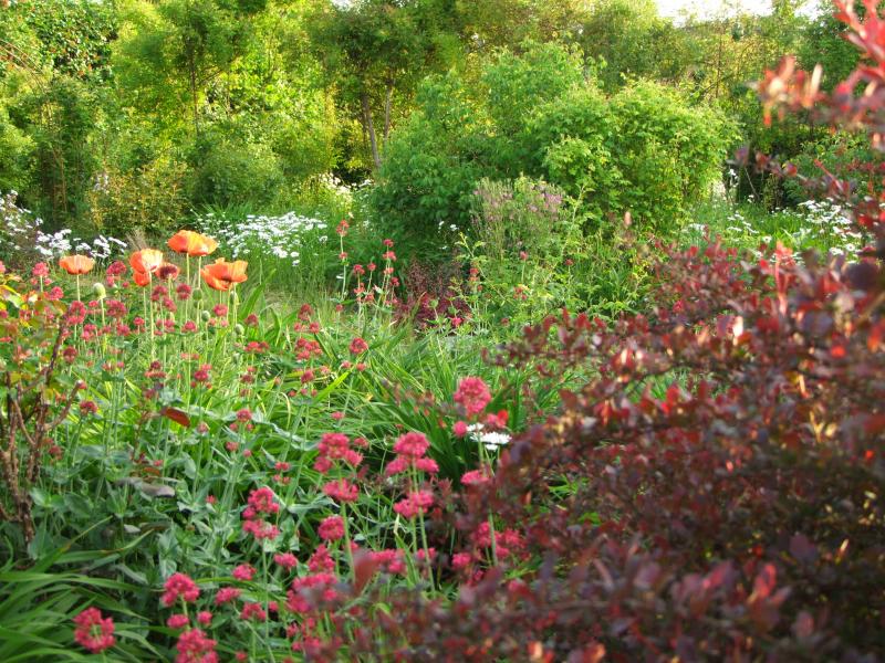 Im roten Beet tut sich erst ganz langsam was.Die Spornblumen und der rote Mohn sind bestimmend.