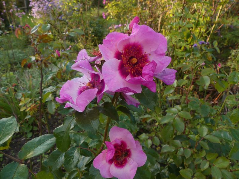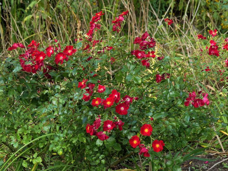 In dieser Ecke knallt es noch einmal mit 'Alcantarra' anspruchlose Kleinstrauchrose.