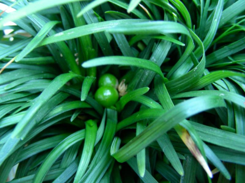 heute habe ich einen Sprung gemacht. Ich habe mich riesig über die paar grünen Beeren an meinen Ophiopogon japonicus 'Pygmaeus' gefreut.diese Früchte sind im Wintergarten entstanden.
