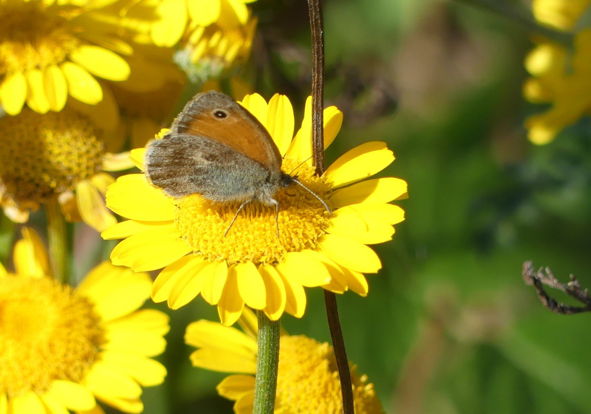 Zum ersten Mal im Garten und der näheren Umgebung gestern ein Kleines Wiesenvögelchen, Coenonympha pamphilus, gesichtet.